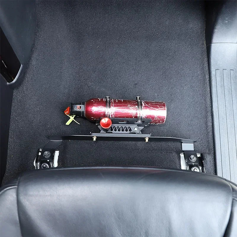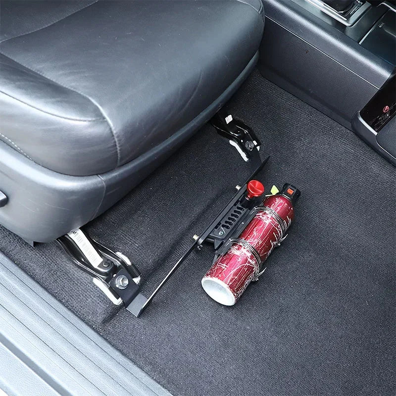 - Almacenamiento seguro y discreto: Mantiene su extintor firmemente en su lugar bajo el asiento, reduciendo el movimiento y posibles daños.