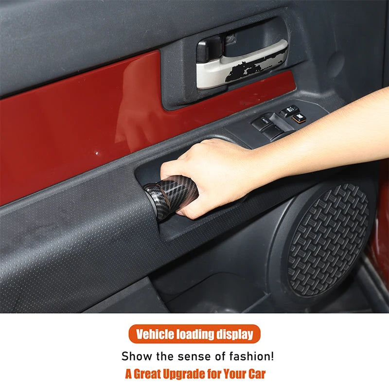 Mejore el interior de su Toyota FJ Cruiser con estas cubiertas para manijas de panel de puerta de fibra de carbono ABS. Fabricadas con plástico ABS de alta calidad y acabado en fibra de carbono, protegen las manijas interiores de arañazos y desgaste diario mientras le dan a su cabina un aspecto elegante y premium. Diseñadas para modelos Toyota FJ Cruiser de 2007 a 2021, estas cubiertas se instalan en minutos con un adhesivo de doble cara fuerte—no se requieren taladros ni herramientas.