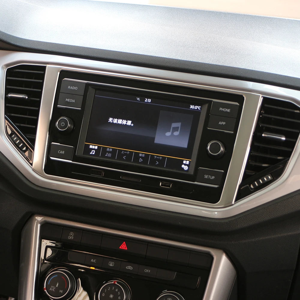 Marco de pantalla de navegación para Volkswagen T-Roc, recorte de acero inoxidable cepillado para modelos LHD 2018 2019 2020 2021