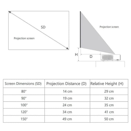 - Tamaño de Proyección: 80–150'' (100'' a 9'' de tiro)