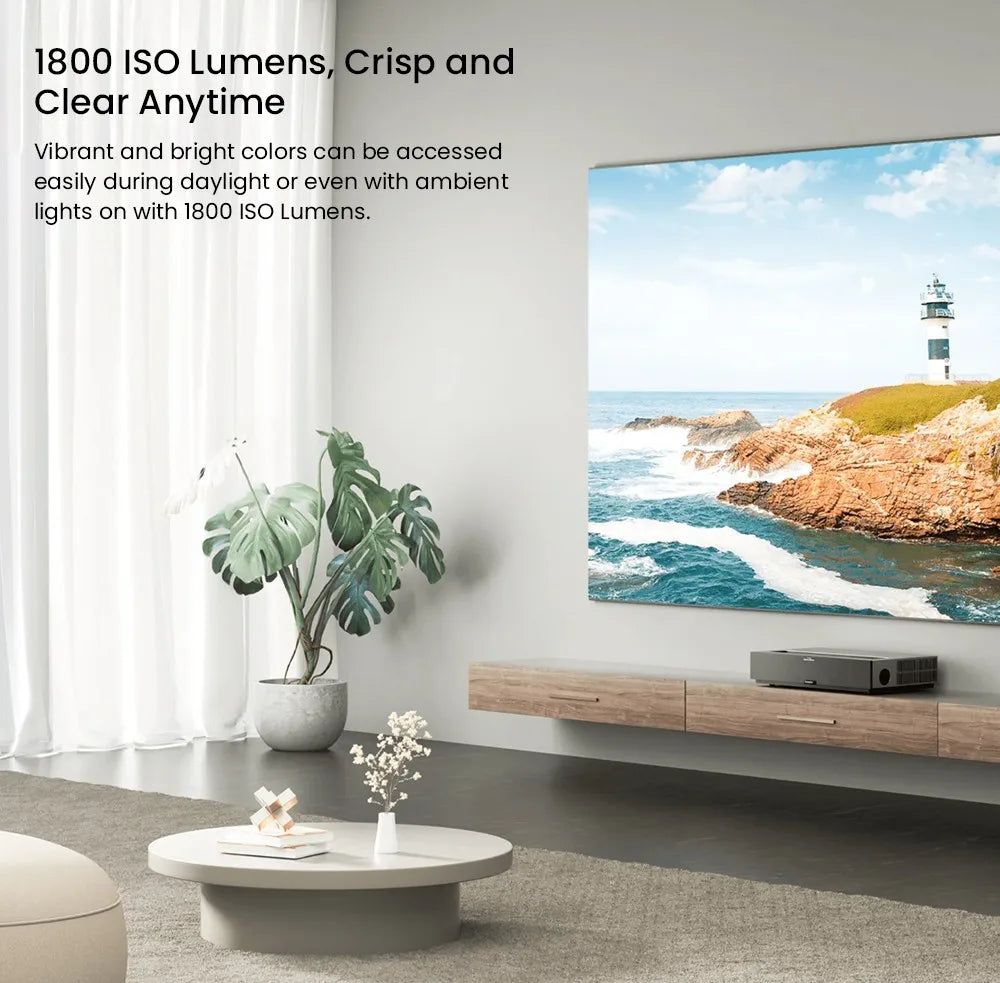 Experimenta imágenes de calidad cinematográfica en casa con el Proyector Láser 4K de Tiro Ultra Corto Formovie Theater. Impulsado por la avanzada Tecnología ALPD 4.0 RGB+ 4.0 Triple Color, este proyector de tiro ultra corto ofrece una impresionante claridad 4K UHD y un amplio gamut de color 107% Rec.2020 para imágenes increíblemente precisas y vibrantes. Con un brillo de 1800 lúmenes ISO, disfrutarás de escenas brillantes y detalladas incluso en habitaciones con algo de luz ambiental. La relación de tiro 0.23:1 te permite proyectar una imagen grande de 100" desde solo 9 pulgadas de distancia, con un tamaño máximo de hasta 150" para una visualización inmersiva sin una configuración desordenada. El soporte Dolby Vision y Atmos mejora aún más tus películas y juegos favoritos con un contraste espectacular y sonido envolvente, mientras que MEMC y ALLM optimizan el movimiento y la capacidad de respuesta para una acción fluida y precisión en los juegos.
