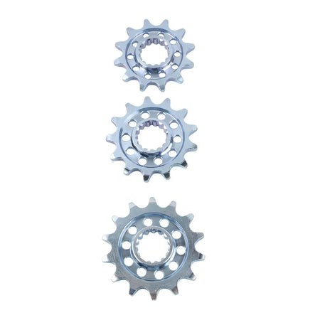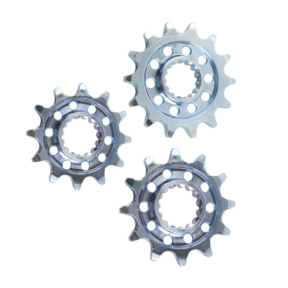 - Elija el número correcto de dientes para ajustar la relación de transmisión: 12D para arranques más rápidos y potencia más contundente a bajas revoluciones, 13D para una configuración equilibrada, o 14D para mayor velocidad máxima y crucero más suave en tramos largos.