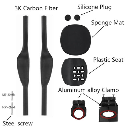 Mejore su configuración de triatlón o contrarreloj con el Manillar de Descanso TT de Fibra de Carbono y Aluminio KOCEVLO. Fabricado con una resistente aleación de fibra de carbono y aluminio, este manillar de descanso ligero con acabado mate 3K está diseñado para eficiencia aerodinámica, agarre preciso y rendimiento fiable en rutas exigentes por carretera.