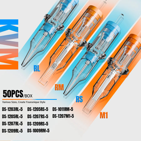 Conoce las Agujas de Cartucho para Tatuaje KVM de 50 Pcs, un conjunto de calidad profesional fabricado con acero inoxidable 304L para ofrecer color preciso, sombreado suave y un rendimiento confiable para estudios de tatuaje ocupados. Cada aguja está soldada a una punta afilada para líneas consistentes y un coloreado rápido, capaz de trabajar continuamente durante 4–6 horas sin desgaste en el borde. El borde de goma ergonómico proporciona un agarre cómodo, reduciendo la fatiga de la mano durante largas sesiones, mientras que un estabilizador minimiza el tambaleo para un trabajo preciso cada vez. Con una membrana segura para evitar que la tinta o la sangre se filtren en el agarre y un diseño anti-retorno, estos cartuchos priorizan la seguridad y la higiene en cada tatuaje.