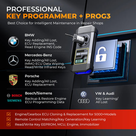 - Usos prácticos: leer y respaldar PINs de inmovilizador y datos de llaves para situaciones de llaves perdidas; clonar o reemplazar ECUs de motor/caja de cambios; programar nuevas llaves o controles remotos para modelos compatibles.