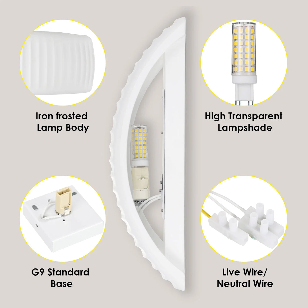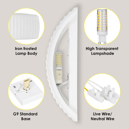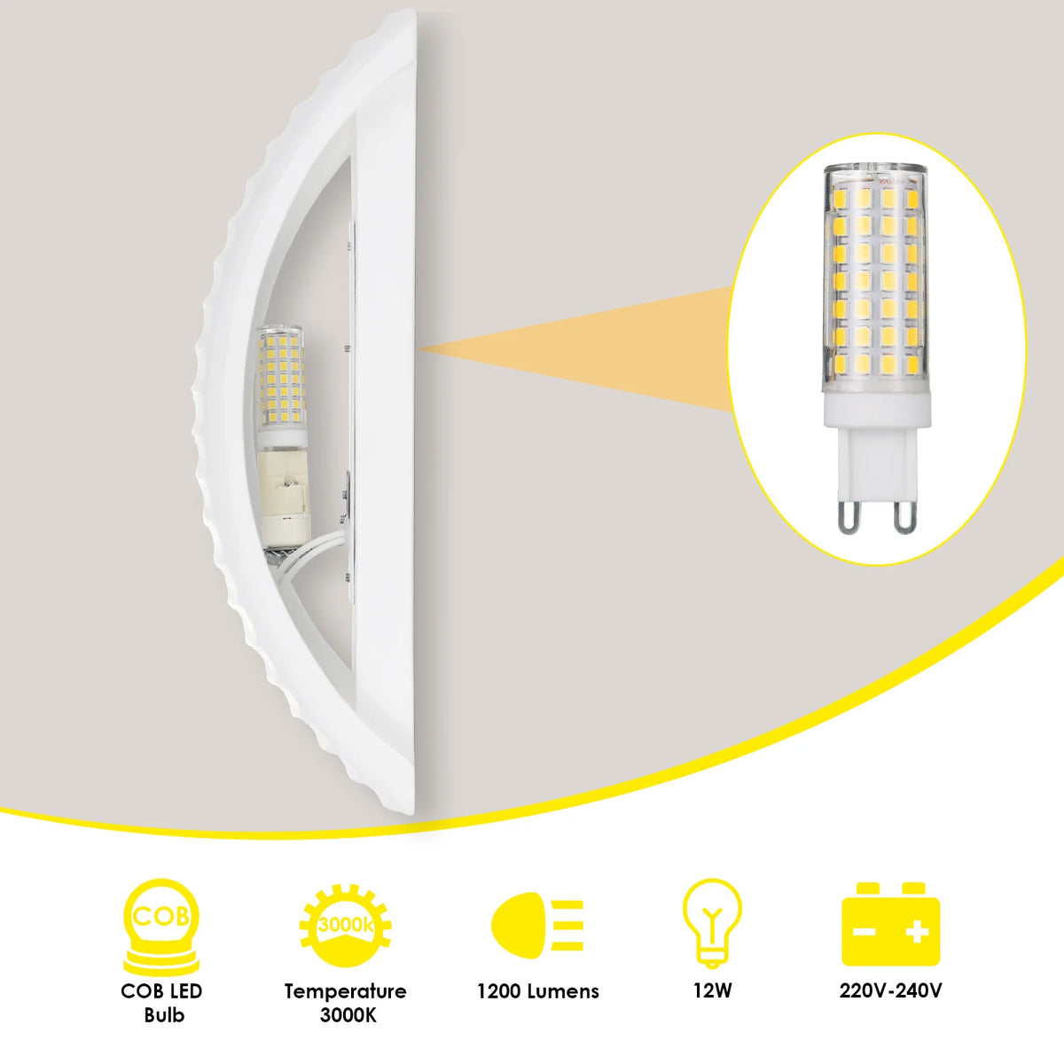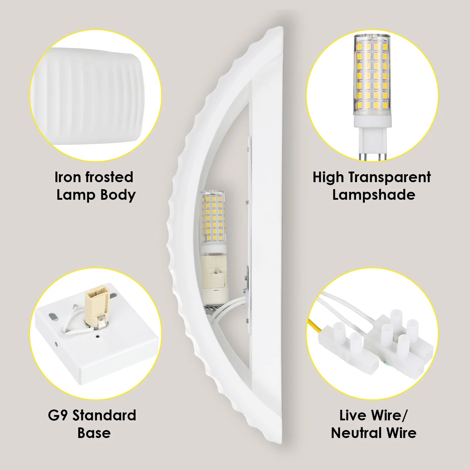 - Bombilla LED G9 incluida para iluminación eficiente en energía; instalación cableada—se recomienda electricista profesional para seguridad.