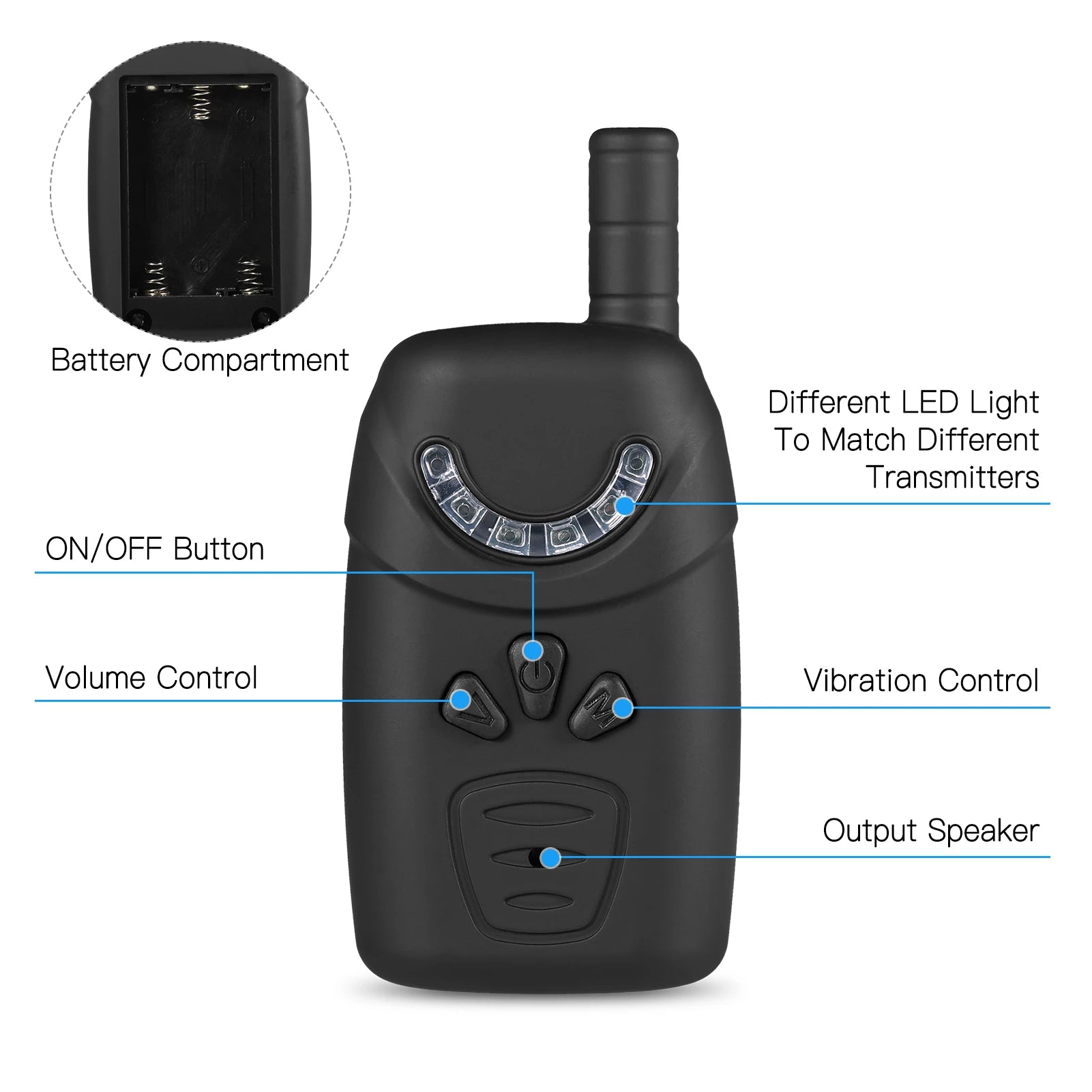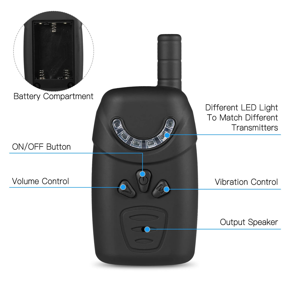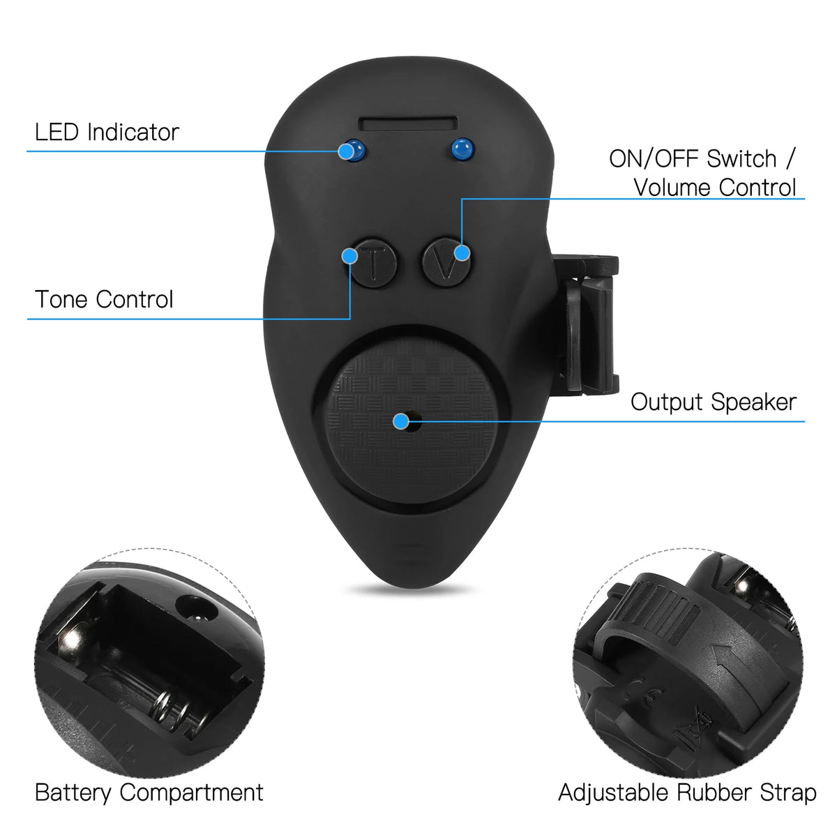 - Asegúrate de usar la correa de goma ajustable para sujetar el transmisor a tu caña cuando sea necesario (correa no incluida).