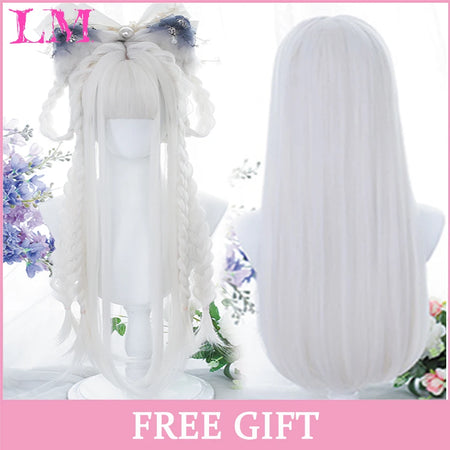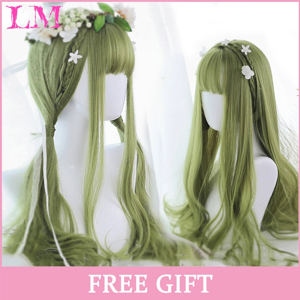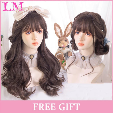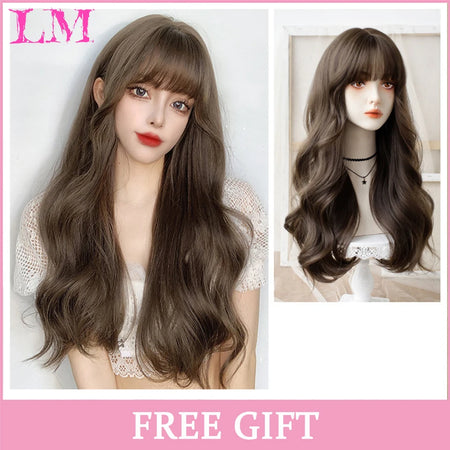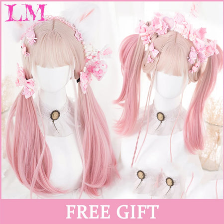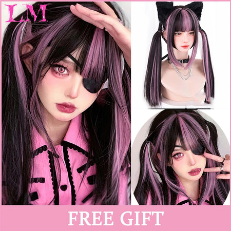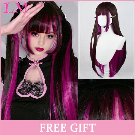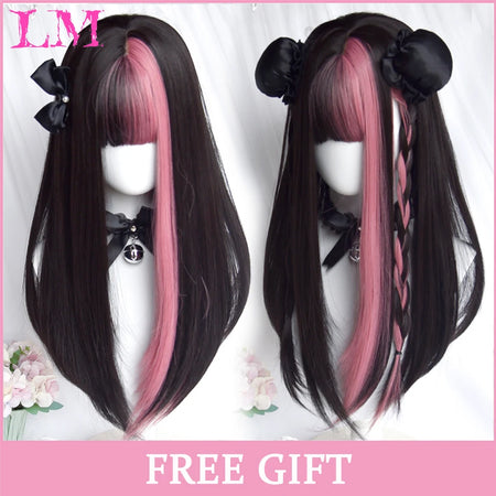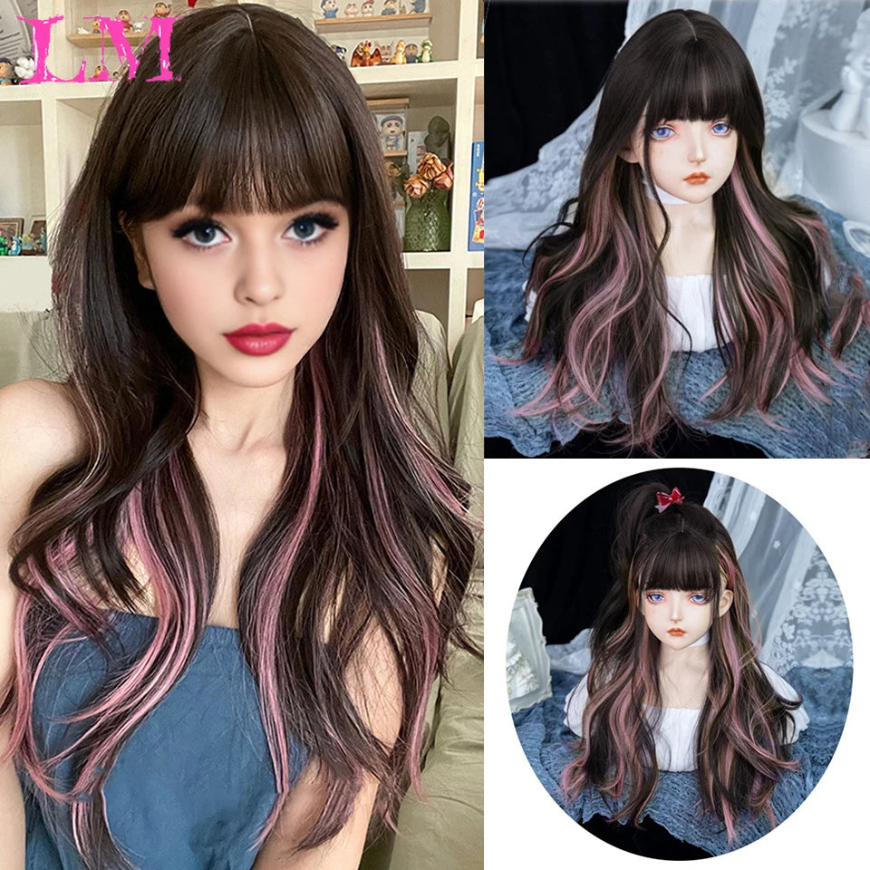 Peluca recta rosa de 24 pulgadas resistente al calor LIANGMO con flequillo