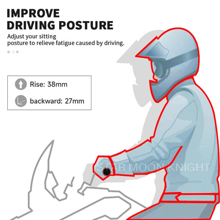 - Función: Eleva la base del manillar 38 mm; desplaza hacia el conductor 27 mm