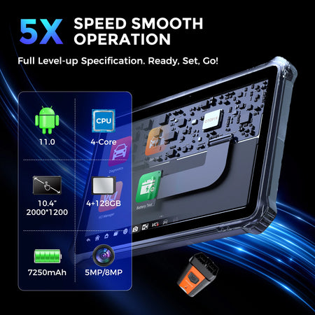 - Realiza diagnósticos de todo el sistema con análisis de DTC de calidad de concesionario y más de 40 funciones de servicio para chequeos de salud del vehículo completos.