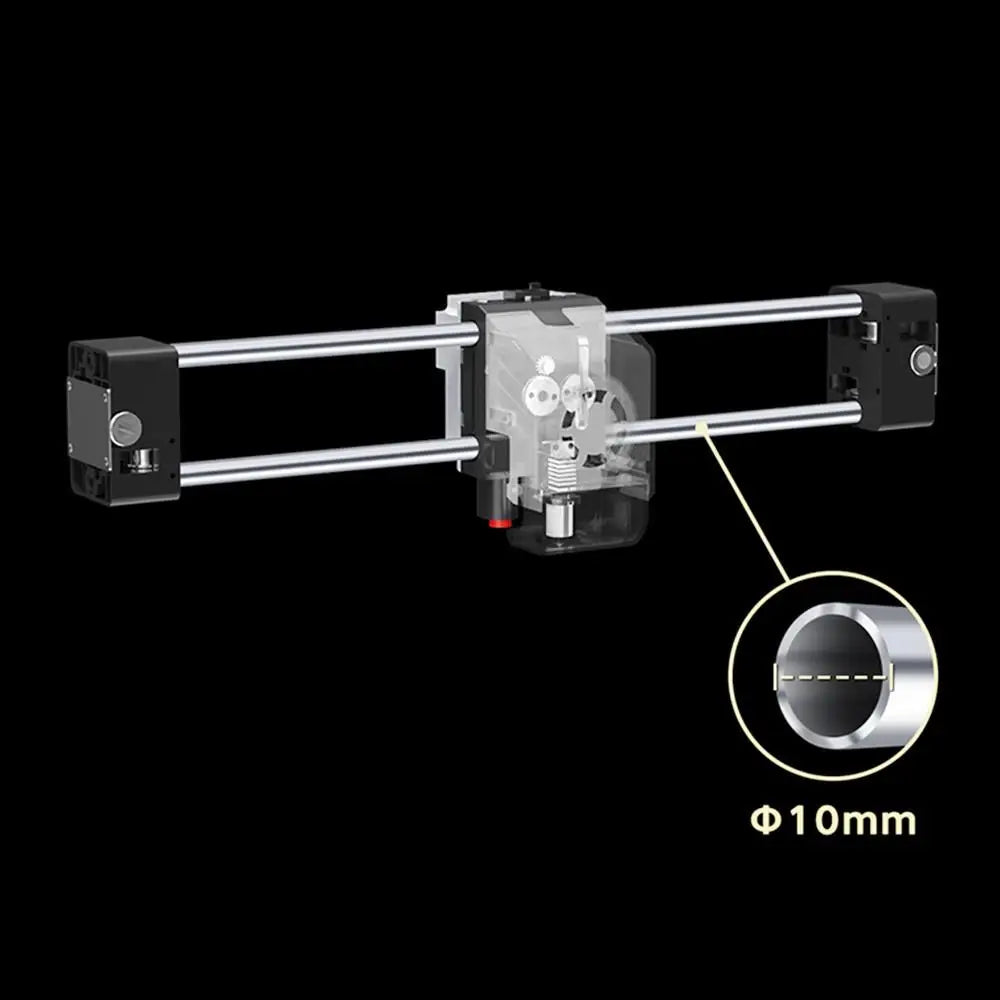 Diseñada para facilidad de uso y capas iniciales consistentes, esta impresora cuenta con nivelación automática de la cama y un doble eje Z para una deposición de capas estable y confiable. El diseño CoreXY se combina con motores silenciosos TMC2209 para minimizar el ruido, haciéndola adecuada tanto para makerspaces concurridos como para estudios en casa. La impresión está protegida adicionalmente por un ventilador de circulación en la cámara con un filtro de aire de carbón activado, asegurando mejor calidad del aire y reducción de olores durante impresiones largas y a alta temperatura. La placa magnética flexible HF proporciona excelente adhesión y una remoción de impresión sin esfuerzo, mientras que los dos extremos calientes (boquillas de aleación de cobre y acero endurecido) manejan una variedad de materiales y filamentos abrasivos con menor desgaste.