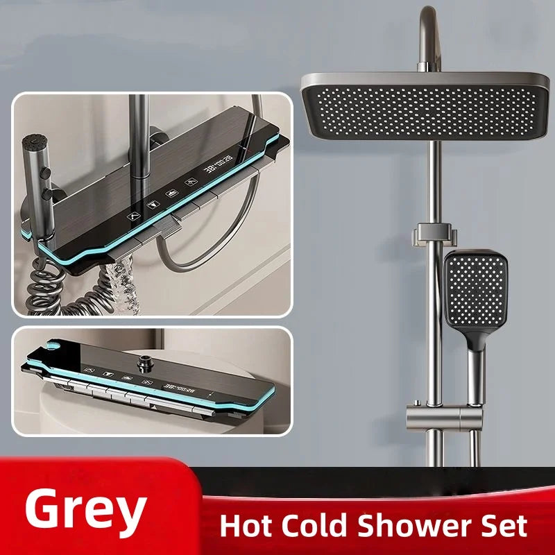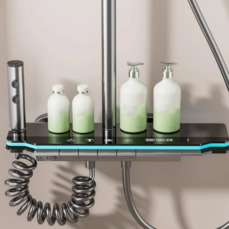 【Enviar desde la UE】Juego de grifos de ducha de lujo para baño con pantalla digital de temperatura y luz, mezclador de ducha caliente y fría