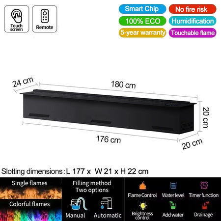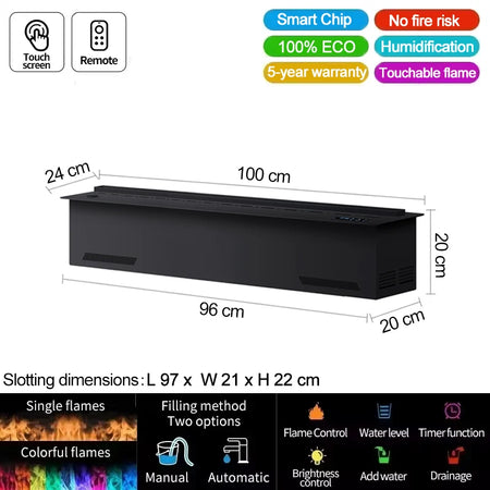 Esta unidad está certificada CE y diseñada para un uso seguro y duradero en la UE y otras regiones. Es una solución todo en uno, que ahorra espacio y se adapta como un inserto de chimenea en una variedad de instalaciones, con múltiples opciones de longitud de 500 a 1800 mm. Disfrute de una experiencia de llama verdaderamente moderna en su hogar, oficina o sala de exhibición, sin los problemas de mantenimiento o preocupaciones de seguridad de los fuegos tradicionales.