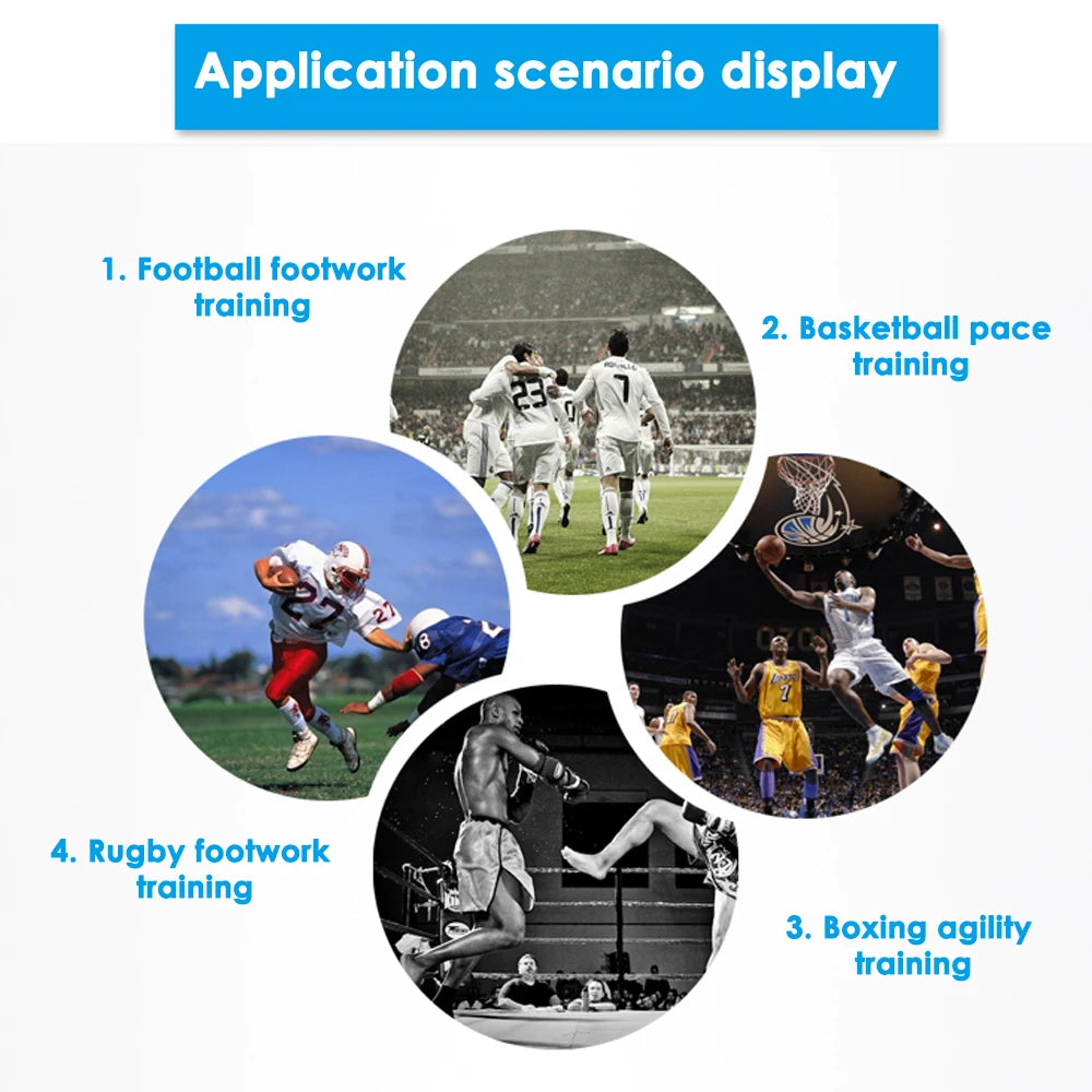- 2–3 usos prácticos: diseñe ejercicios con la escalera para aumentar la frecuencia de zancada y aceleración; realice secuencias de conos para mejorar el cambio de dirección y la agilidad; combine con el paraguas de resistencia para añadir resistencia al sprint y desarrollar potencia.