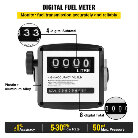 Diseñada para la practicidad, esta bomba de transferencia de 220V es ideal para camiones, tambores de aceite, vehículos diésel y barcos de vapor. Su función de auto-succión minimiza el esfuerzo de arranque, mientras que las opciones de lectura dual (estilo mecánico/digital) permiten monitorear el flujo de combustible con precisión. Nota: NO GASOLINA ni otro fluido combustible.