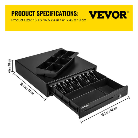 - El paquete incluye: 1 cajón de efectivo, 1 bandeja de monedas extraíble, 2 llaves
