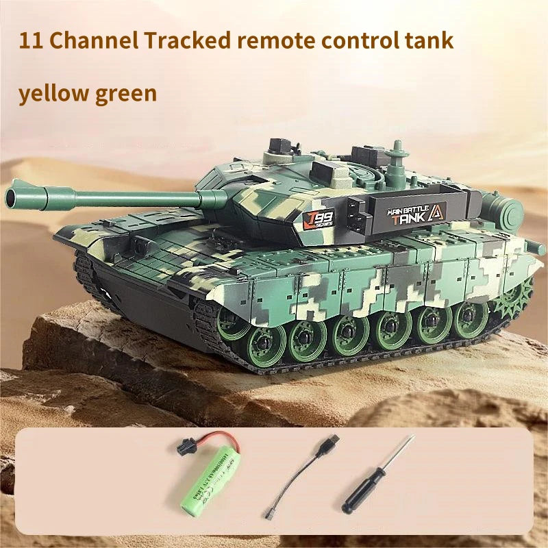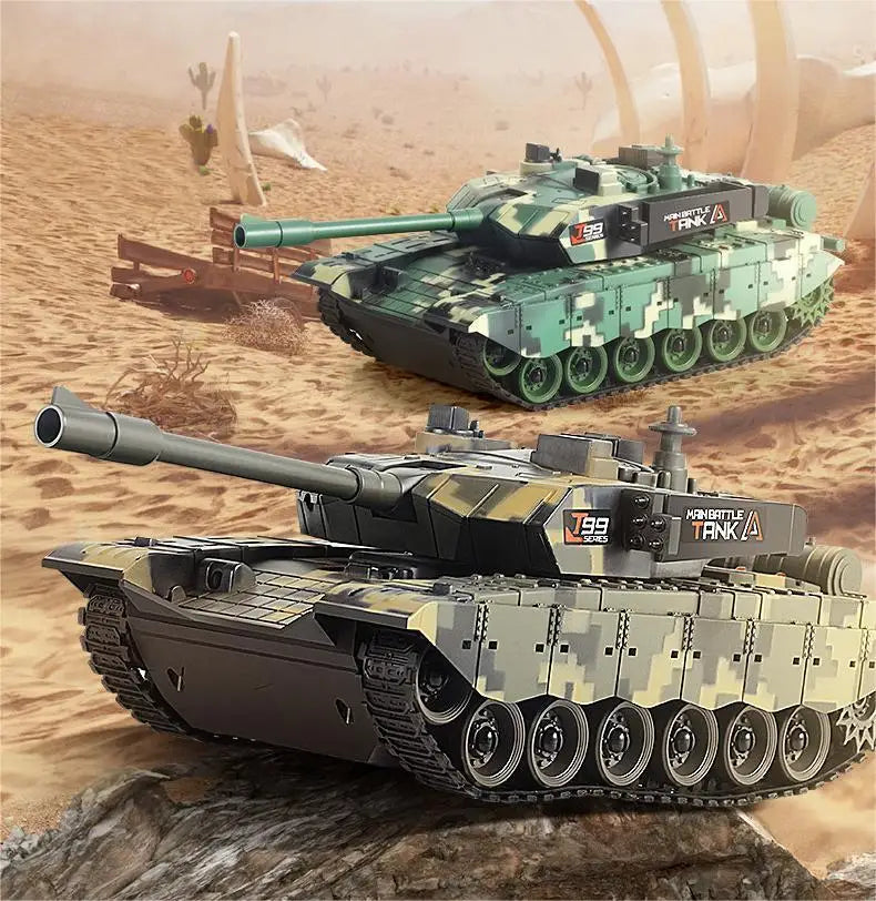 El tanque de control remoto CONUSEA Tracked RC Tank 2.4G con luces LED es un tanque de batalla compacto y listo para usar, diseñado para acción al aire libre. Su chasis con orugas maneja arena, césped y superficies rocosas con tracción estable, aportando una auténtica sensación de tanque durante el juego. Con un control remoto de 2.4GHz y 4 canales, obtienes dirección precisa, rotación de torreta y control adelante/atrás para batallas inmersivas. Los faros LED iluminan el camino para un juego emocionante nocturno, mientras que los sonidos simulados incorporados aumentan el realismo. Este tanque viene con una batería de litio recargable, se carga en aproximadamente 1 hora y funciona hasta 30 minutos con una sola carga. El kit está listo para usar con configuración mínima y soporta múltiples jugadores sin interferencias, haciéndolo perfecto para escaramuzas en el patio trasero o batallas amistosas en arena.