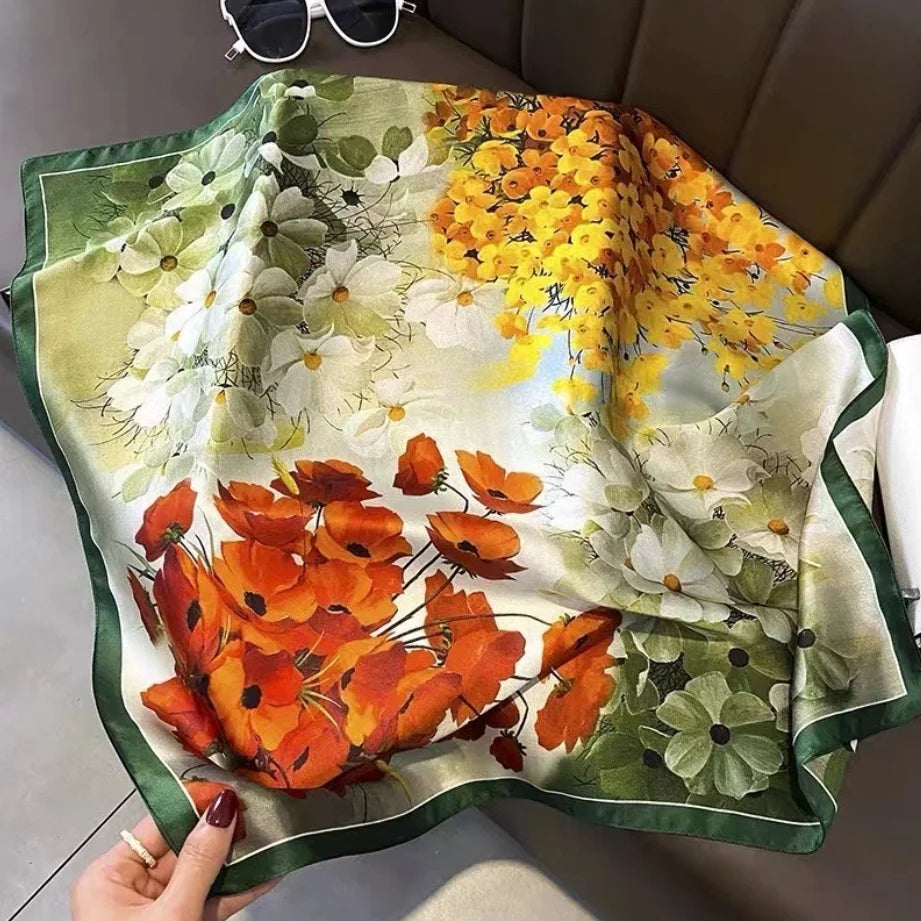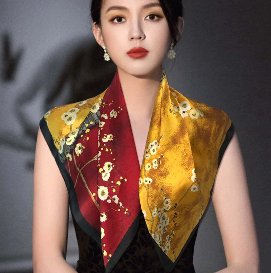 - Material Lujoso: Hecha de seda simulada de alta calidad, esta bufanda se siente suave contra la piel y cae elegantemente.