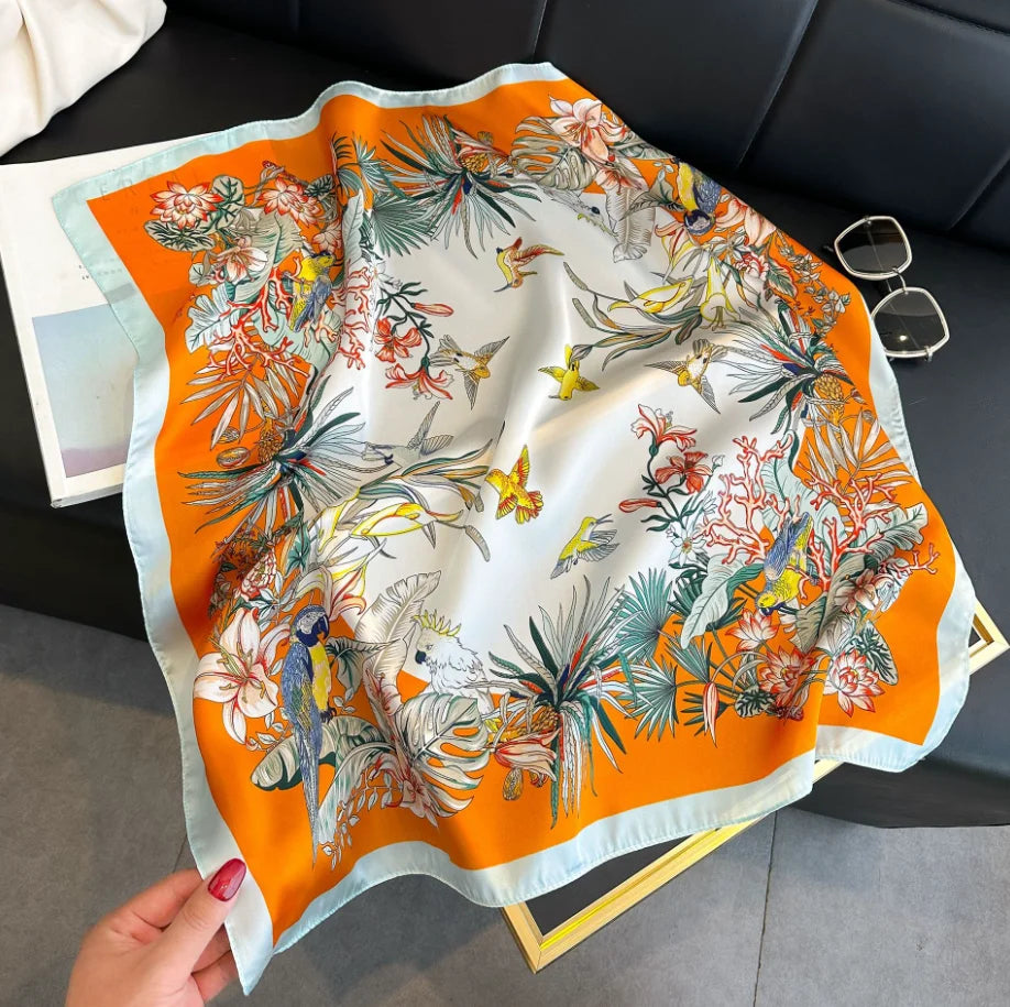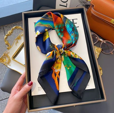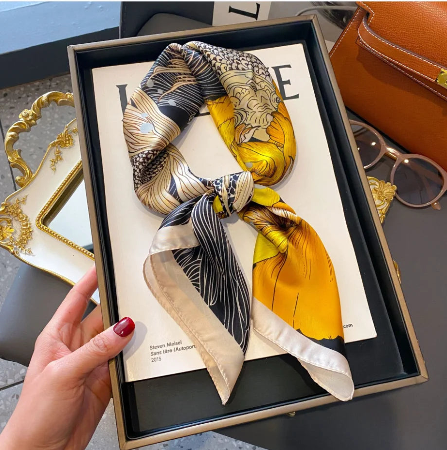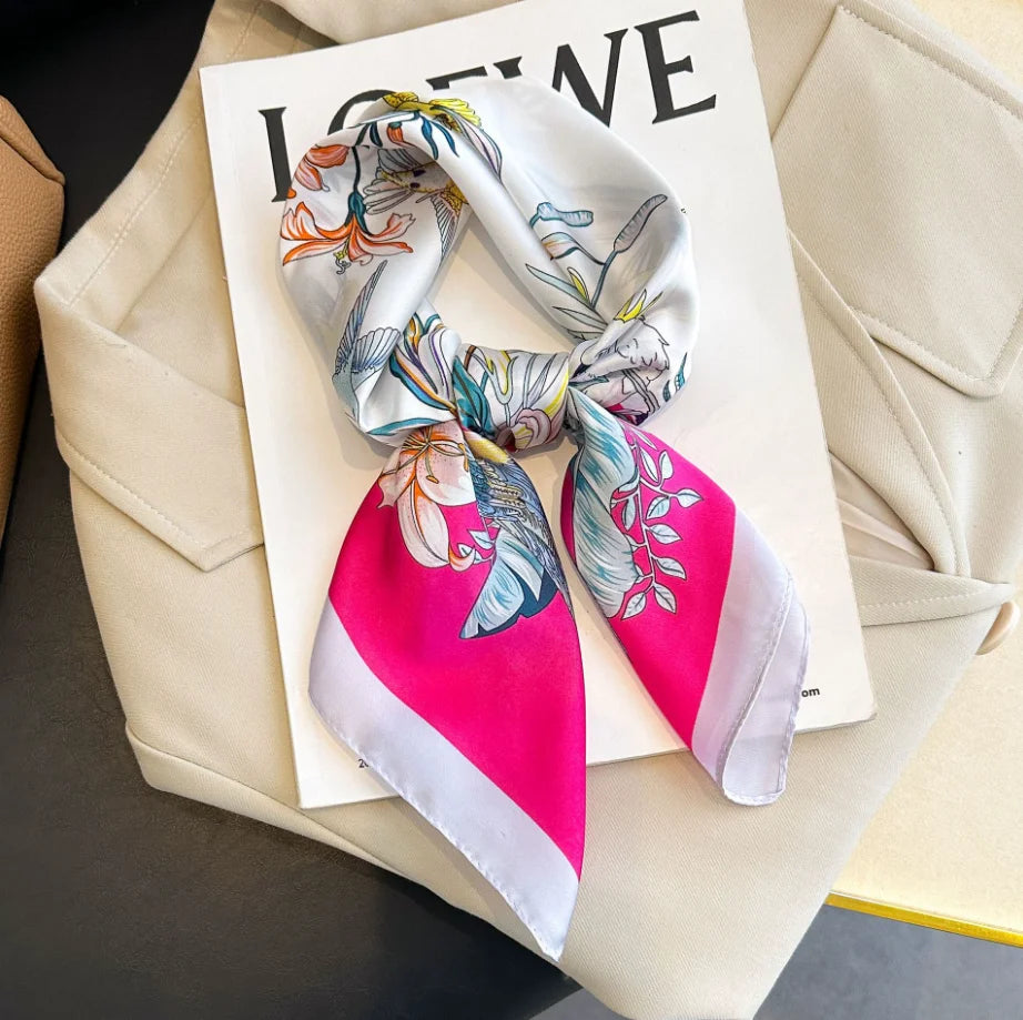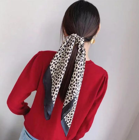 - Diseño Versátil: Con una medida de 70cm, se puede estilizar de varias maneras, ya sea como un pañuelo para la cabeza, accesorio para el cabello o adorno para el bolso.