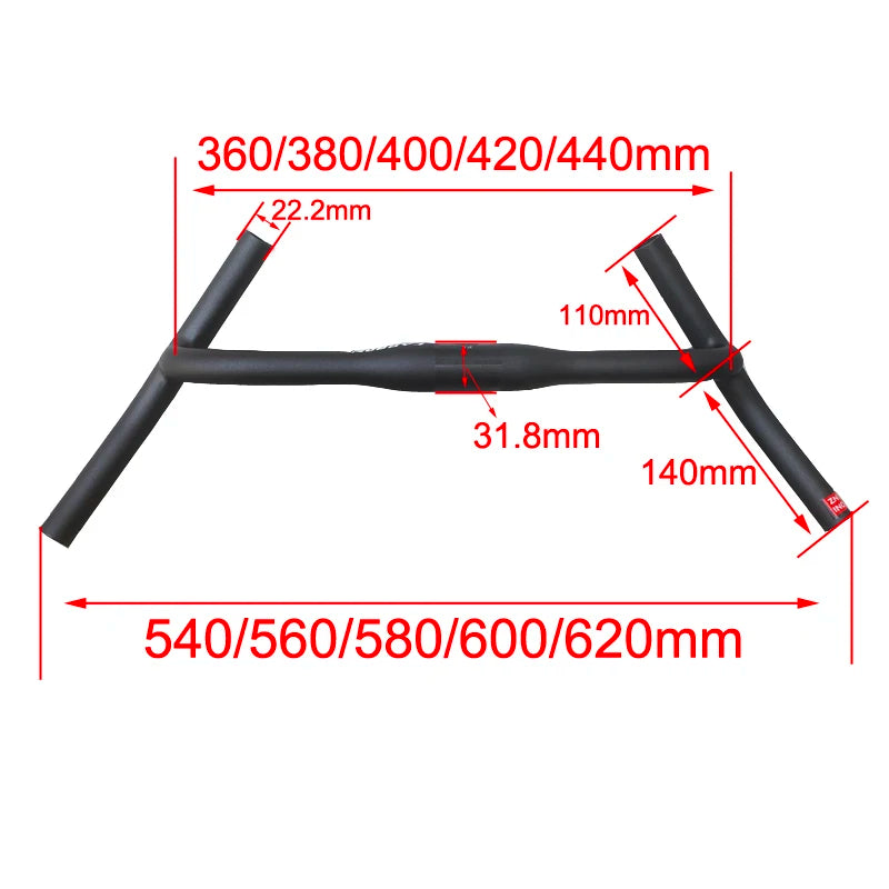 Manillar en carbono ZNIINO para grava con forma de H, abrazadera de 31.8mm, gran flare para bicicletas de carretera y MTB, 38cm, ligero