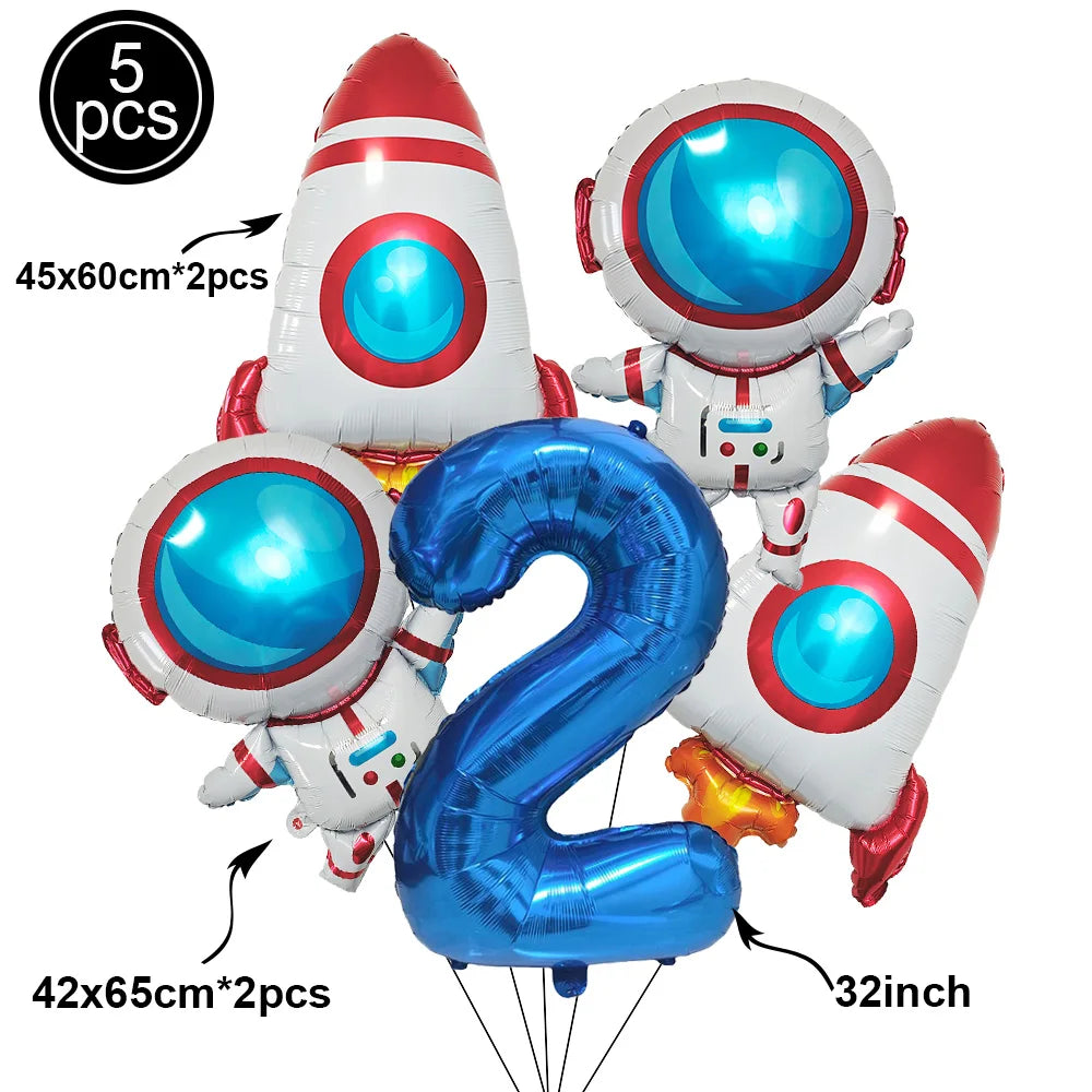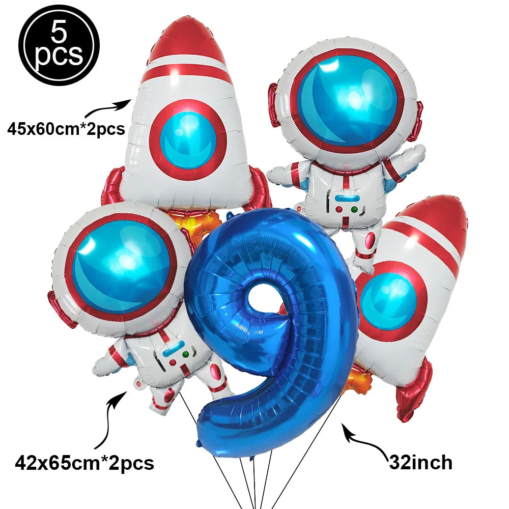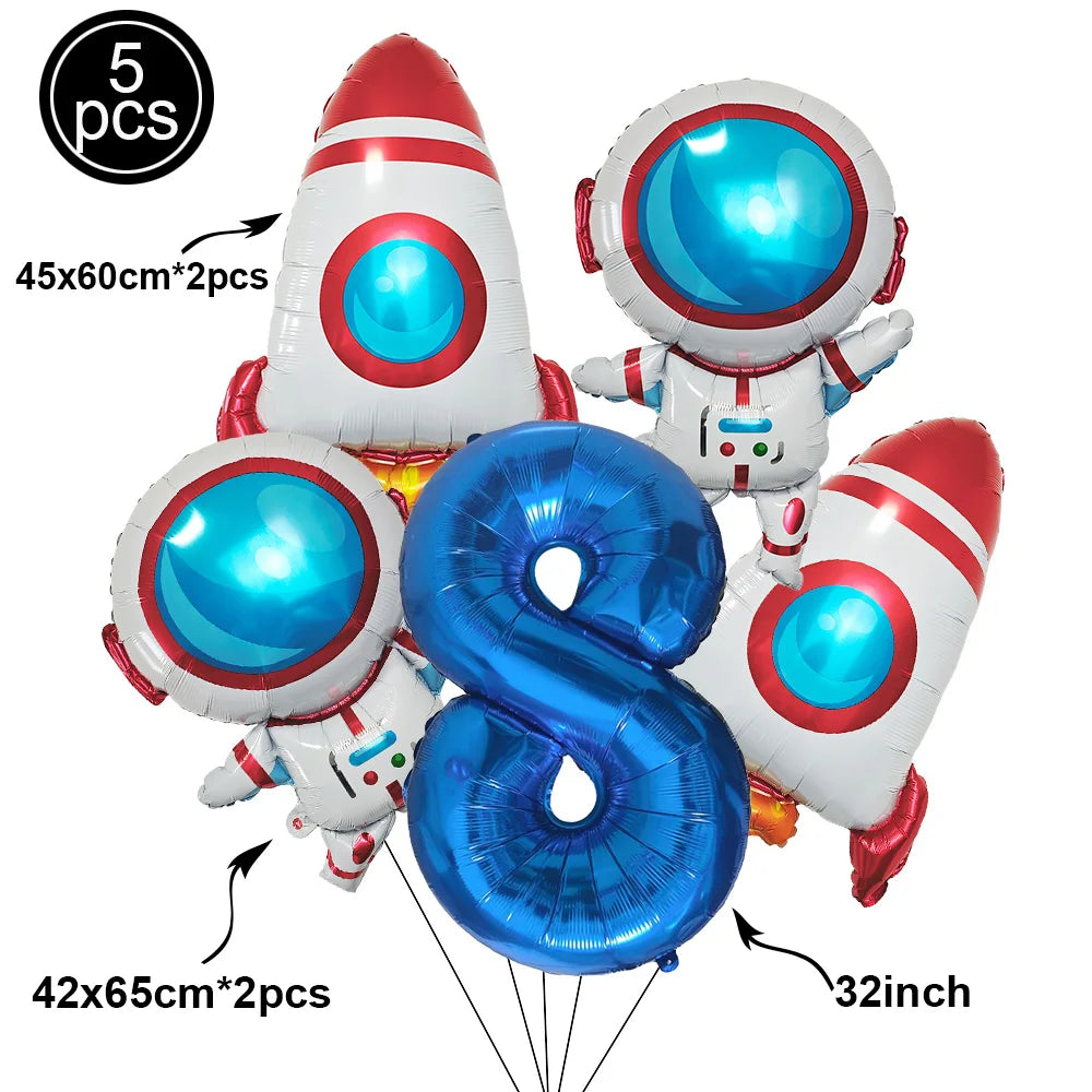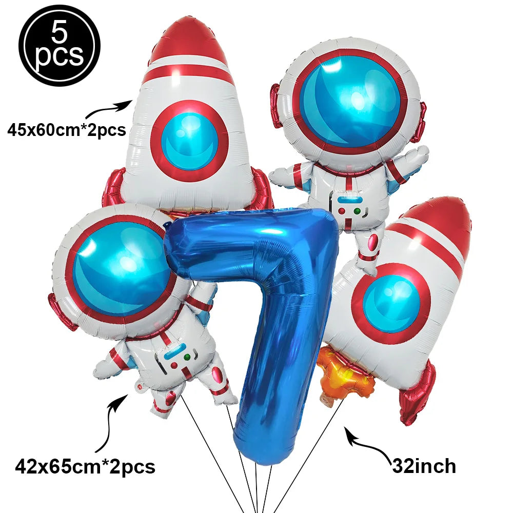 Galaxy Space Balloons Set - 32-Inch Number, Rocket & Astronaut for Boys' Parties