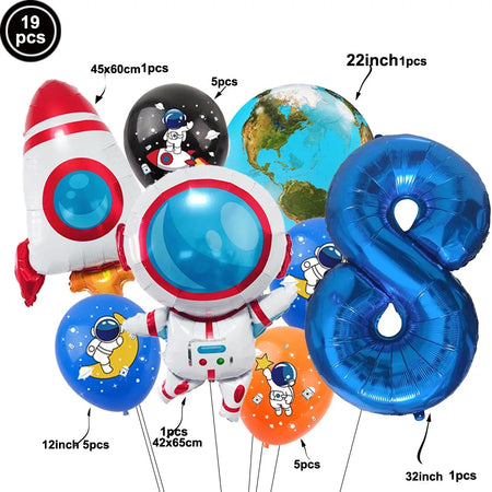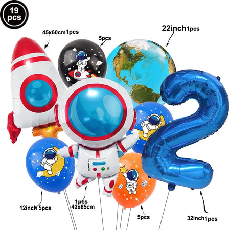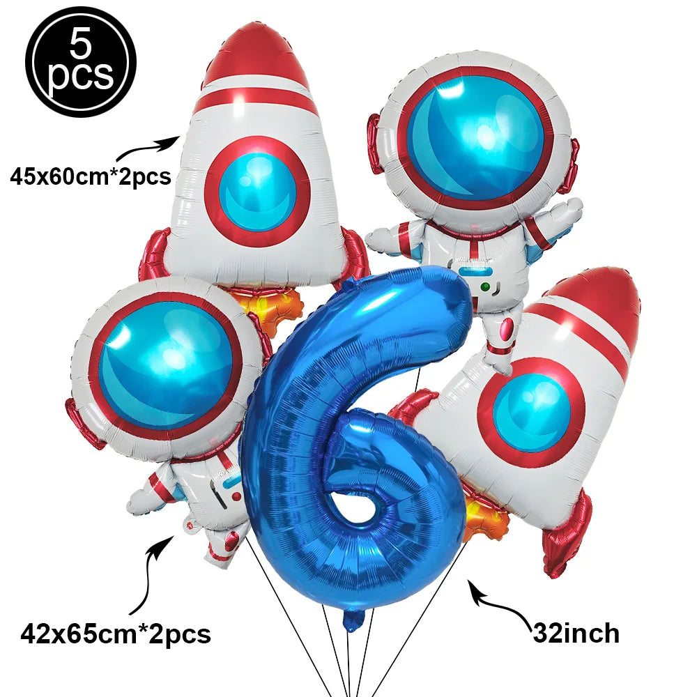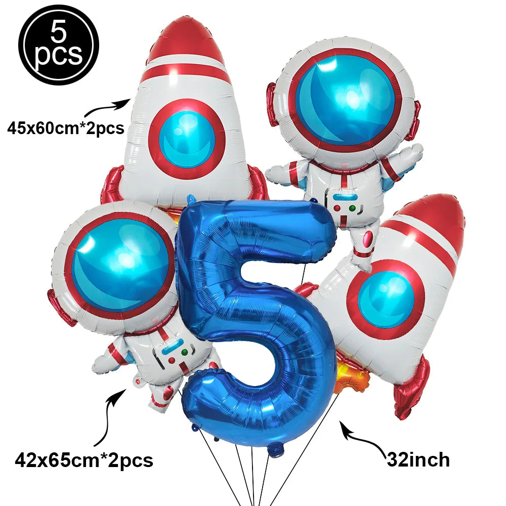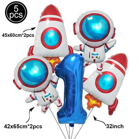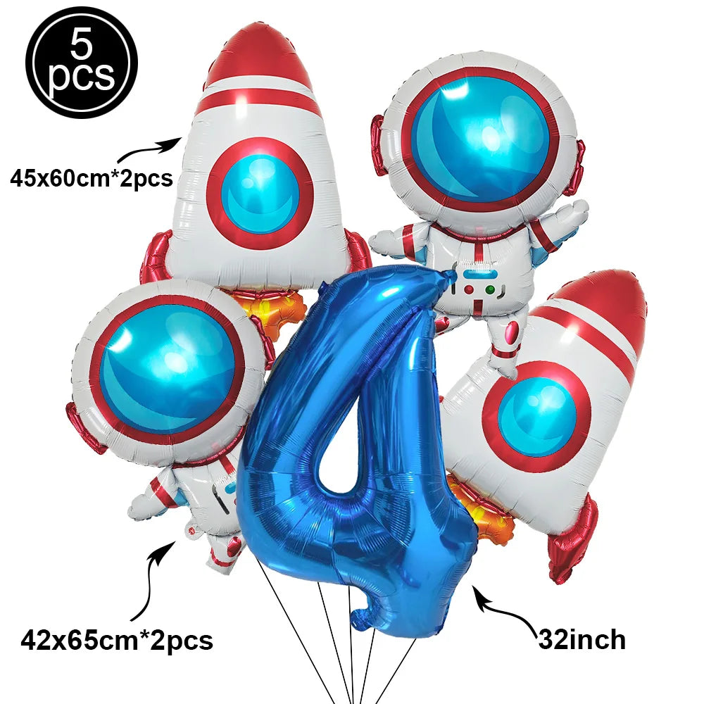 Galaxy Space Balloons Set - 32-Inch Number, Rocket & Astronaut for Boys' Parties