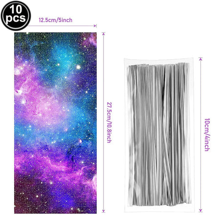 Veenduge, et need õhupallid oleksid parimate tulemuste saavutamiseks täidetud heeliumiga. Hoidke teravate esemetega ja otsese päikesevalguse eest eemal, et pikendada nende eluiga. Jälgige alati lapsi õhupallide kasutamise ajal, kuna need võivad plahvatades põhjustada lämbumisohtu. Täiuslik, et muuta teie galaktika-teemalised peod unustamatuks!