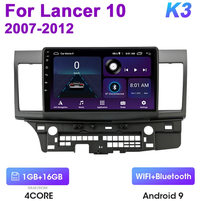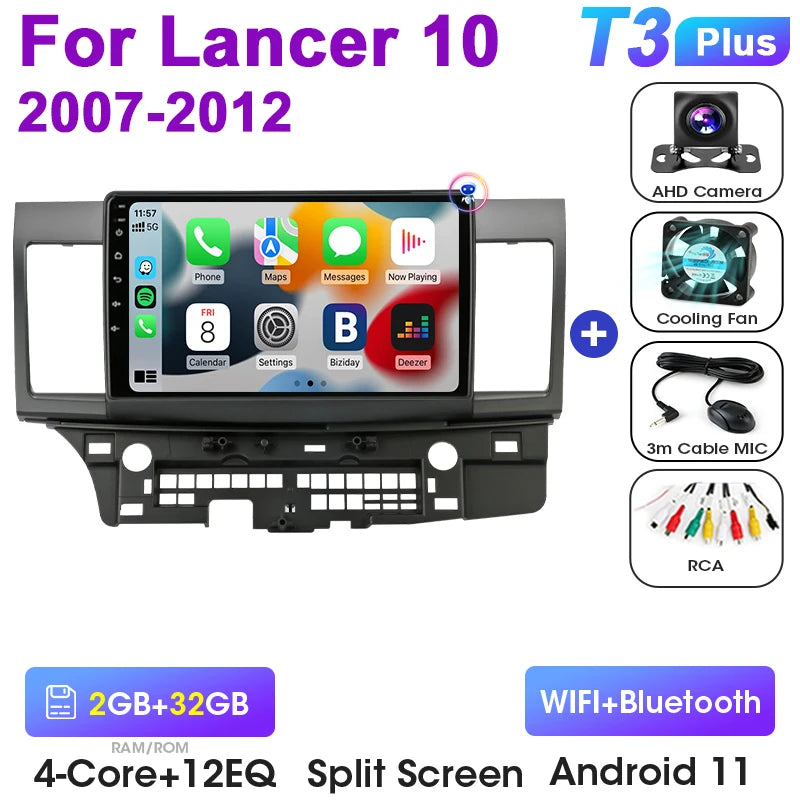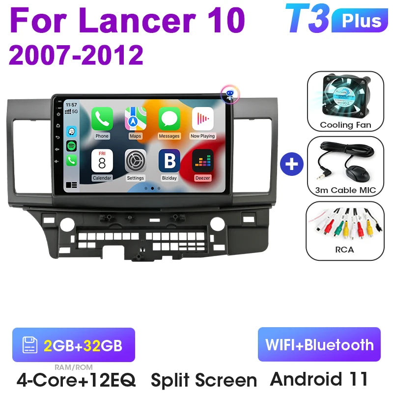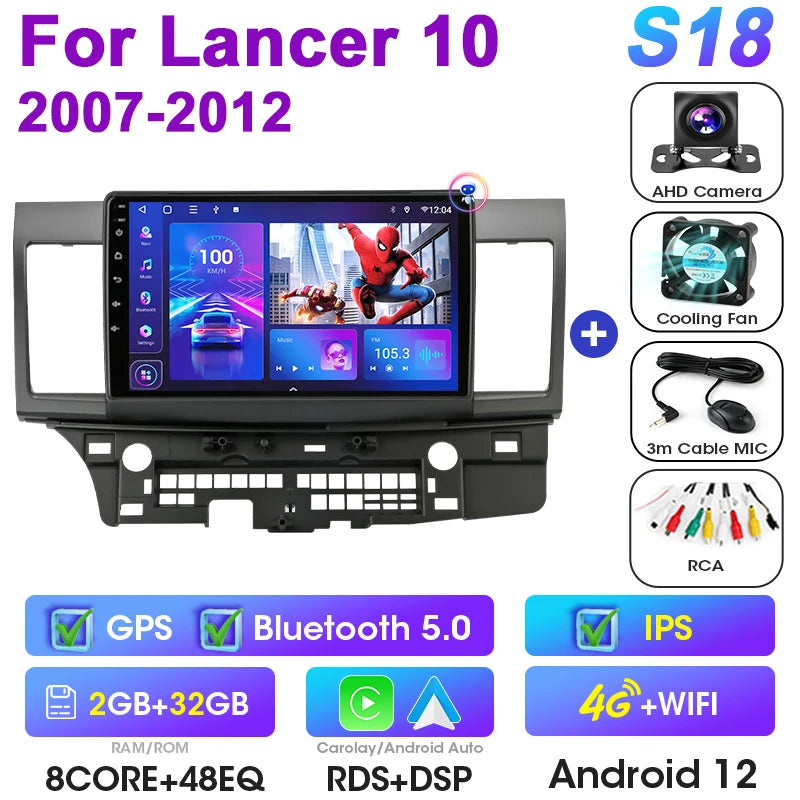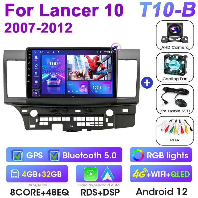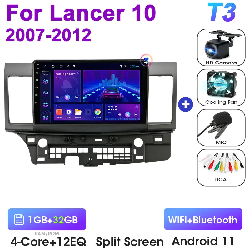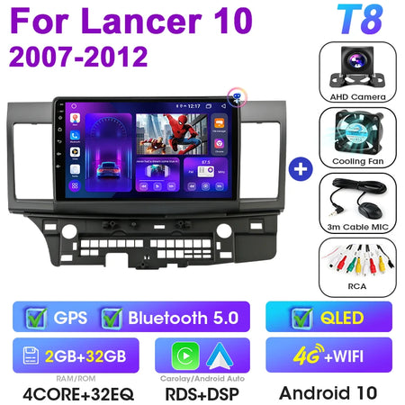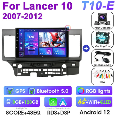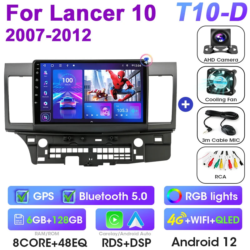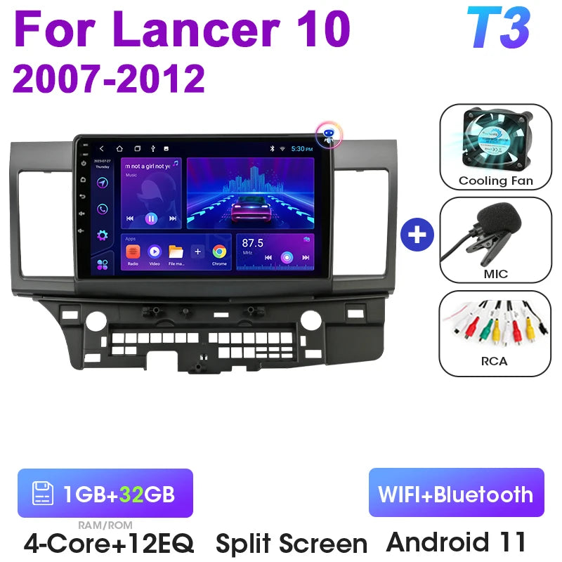 Mitsubishi Lancer 10-tollise Android 12 autoraadio GPS CarPlay Android Auto jaoks