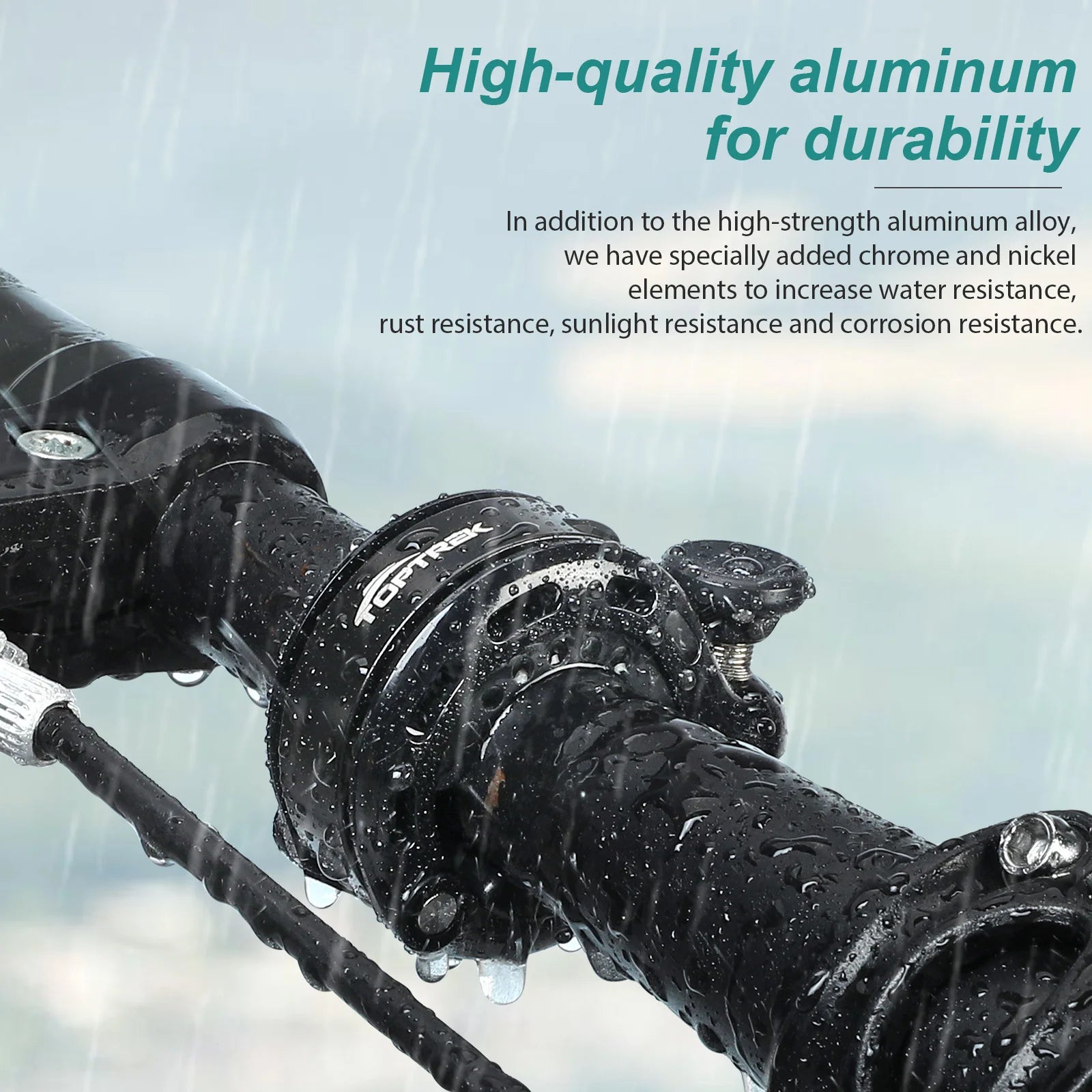 Tutvuge Toptrek MTB jalgratta kellaga 110dB valju alumiiniumisulamist mini kell — kompaktne, vastupidav häireseade, mis on loodud mägijalgrattasõiduks ja igapäevaseks sõiduks. Sellel on valjem ja selgem helin kui tavalistel kelladel, aidates teil suhelda oma kohalolekust hõivatud radadel ja linnaliikluses, suurendades sõitjate ohutust ilma stiili ohverdamata. Helitugevust tõstab suurem vibratsioonikamber, mis tagab pideva 100–110dB normaalses kasutuses ja kuni 120dB lühikeste signaalide jaoks, kui vajate lisasignaali.