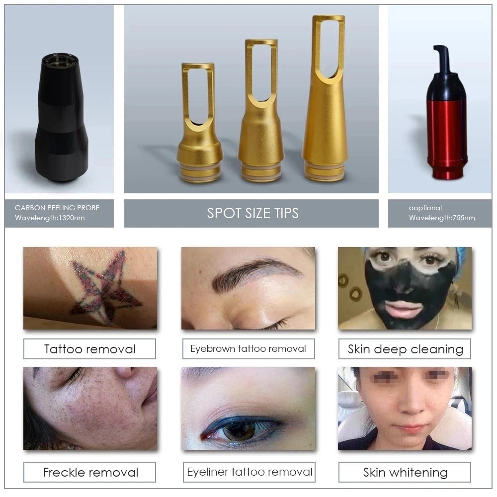 - Rakendused: Tätoveeringute eemaldamine, pigmentide eemaldamine, naha pigmentatsiooni korrigeerimine