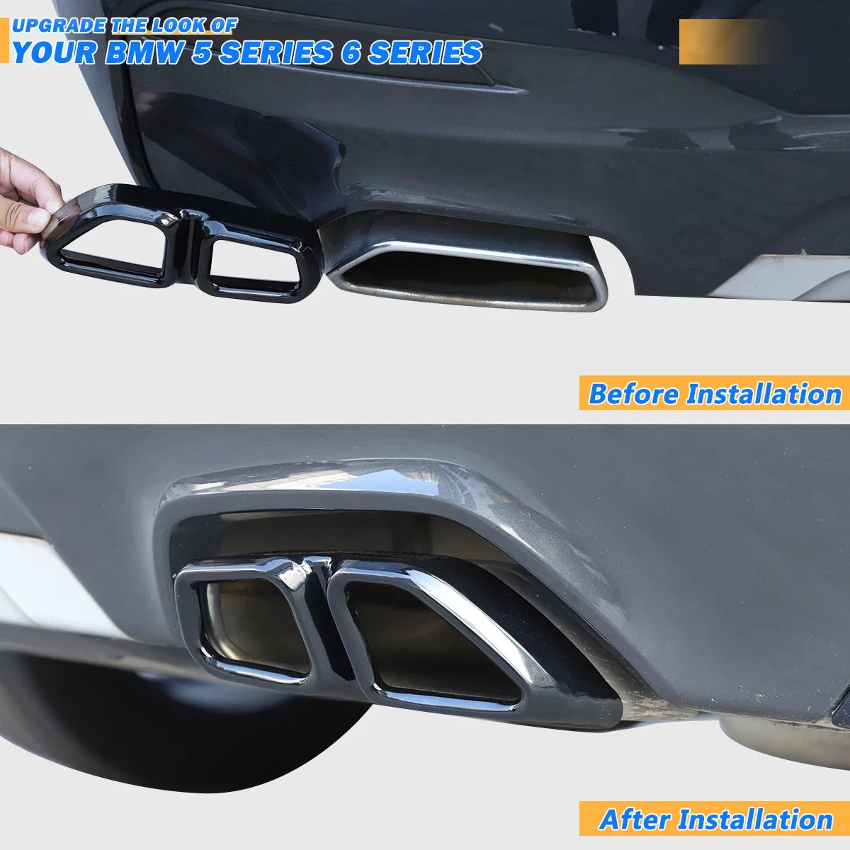 - 2 tükki roostevabast terasest musta summuti katet BMW 5 seeria GT (G30/G32/G38) 2018-2023 jaoks
