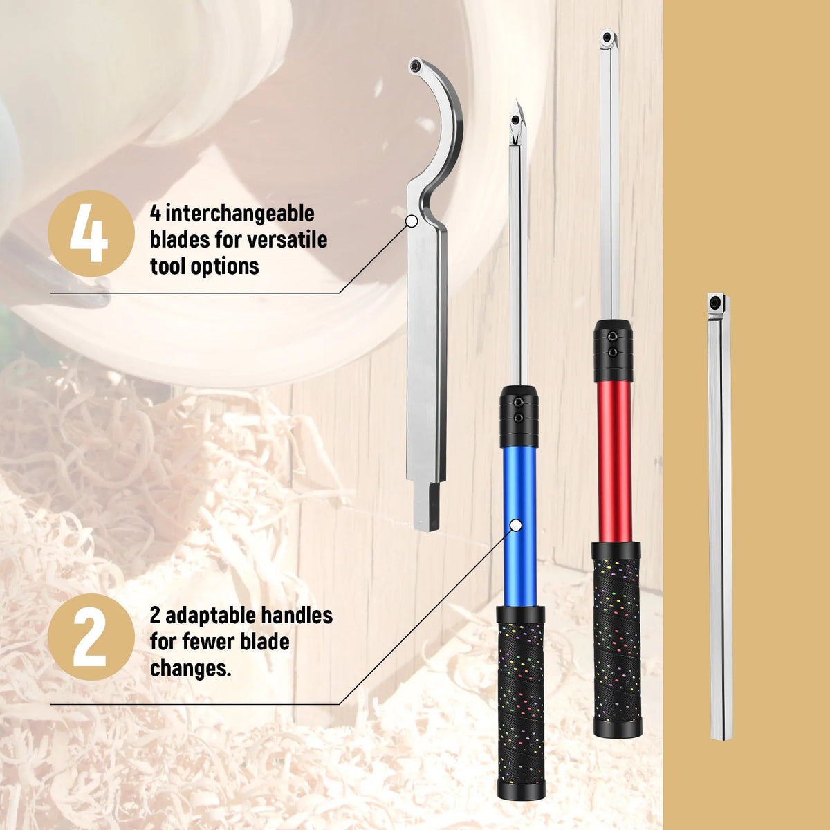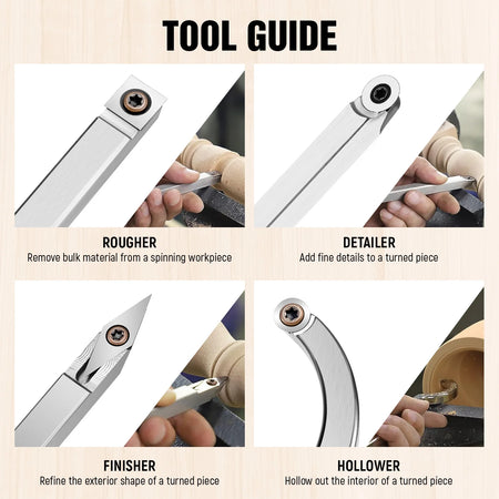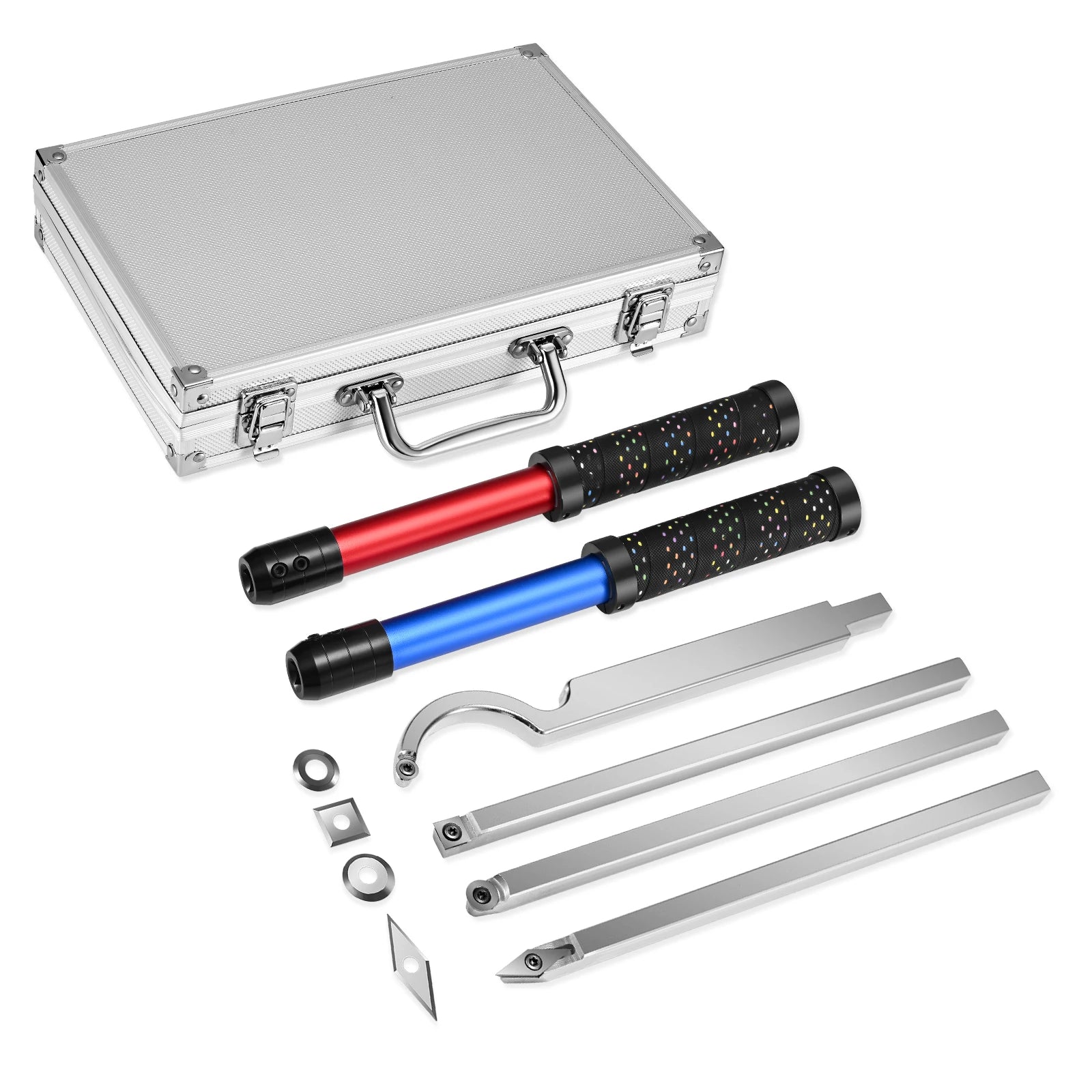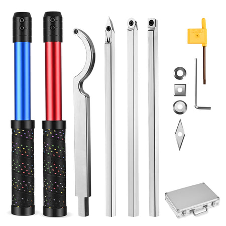 Avasta täpsus ja mitmekesisus 4 In 1 Carbide Woodturning Tool Set With Box For Woodworking by Jugacool. See kompaktne, kõrge jõudlusega komplekt on ideaalne nii algajatele kui ka kogenud puutöölistele, pakkudes nelja erinevat lõikurit, kahte ergonoomilist käepidet ja vastupidavat alumiiniumkasti, et hoida oma tööriistad organiseeritud ja kaasaskantavad. Valmistatud kvaliteetsest roostevabast terasest, püsib komplekt kauem terav ja võimaldab sul hõlpsasti tegeleda kõigega alates jämedast vormimisest kuni delikaatse detailimiseni.