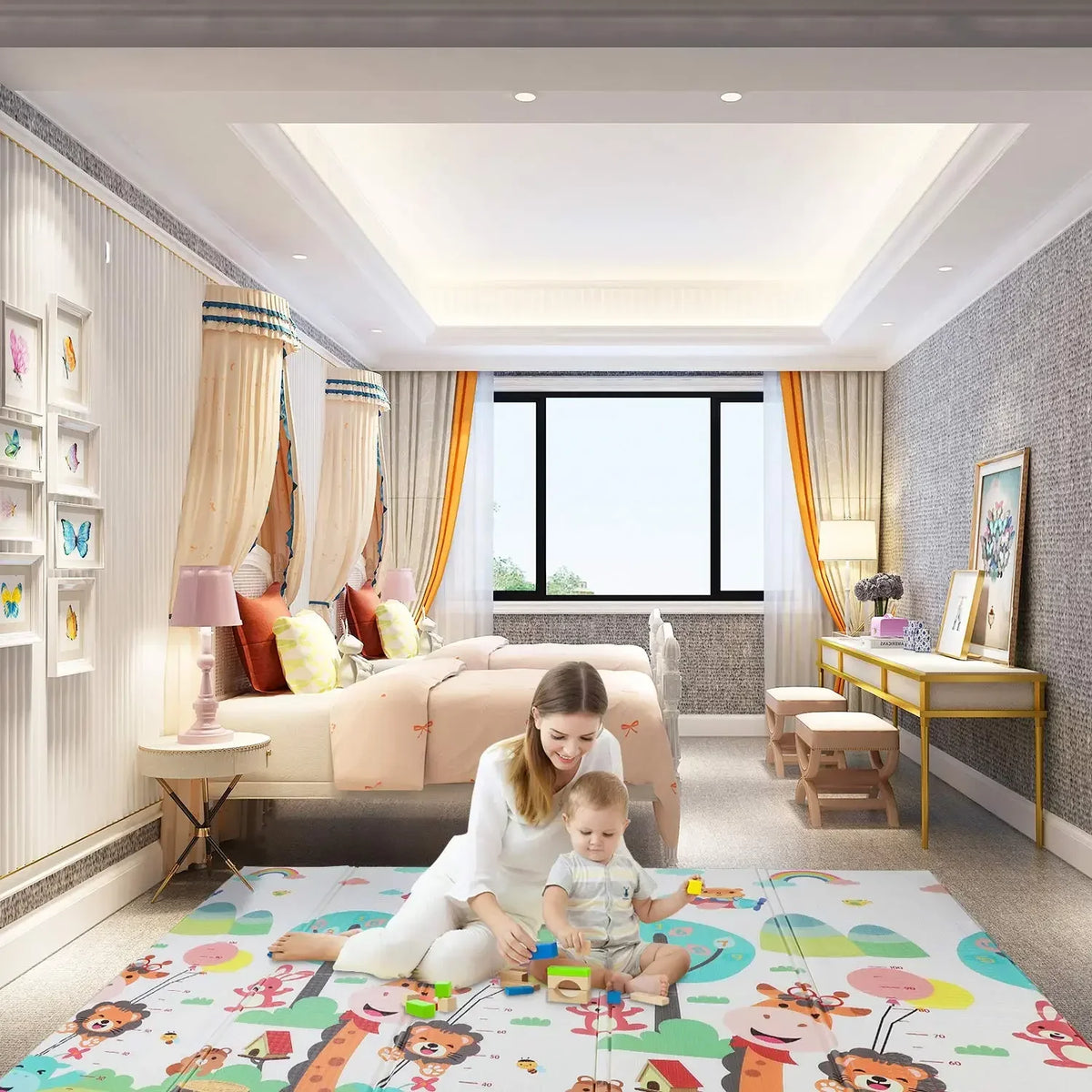 Mustri detailid sisaldavad Treehouse ja Giraffe (multifilmistiilis), pakkudes visuaalset mitmekesisust, et köita beebide tähelepanu ja julgustada aktiivset mängu. Voltimisdisain muudab selle lihtsaks transportimiseks siseruumides või õues seiklemiseks, muutes iga ruumi ohutuks mängualaks.