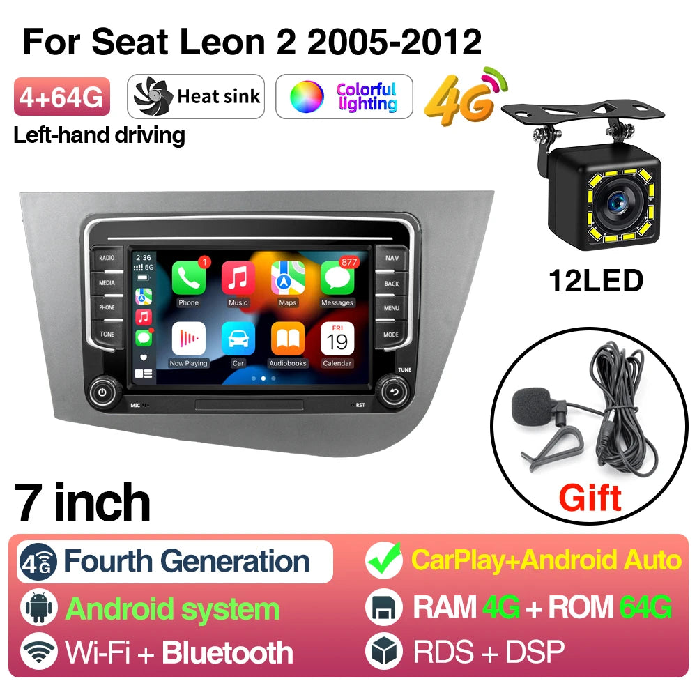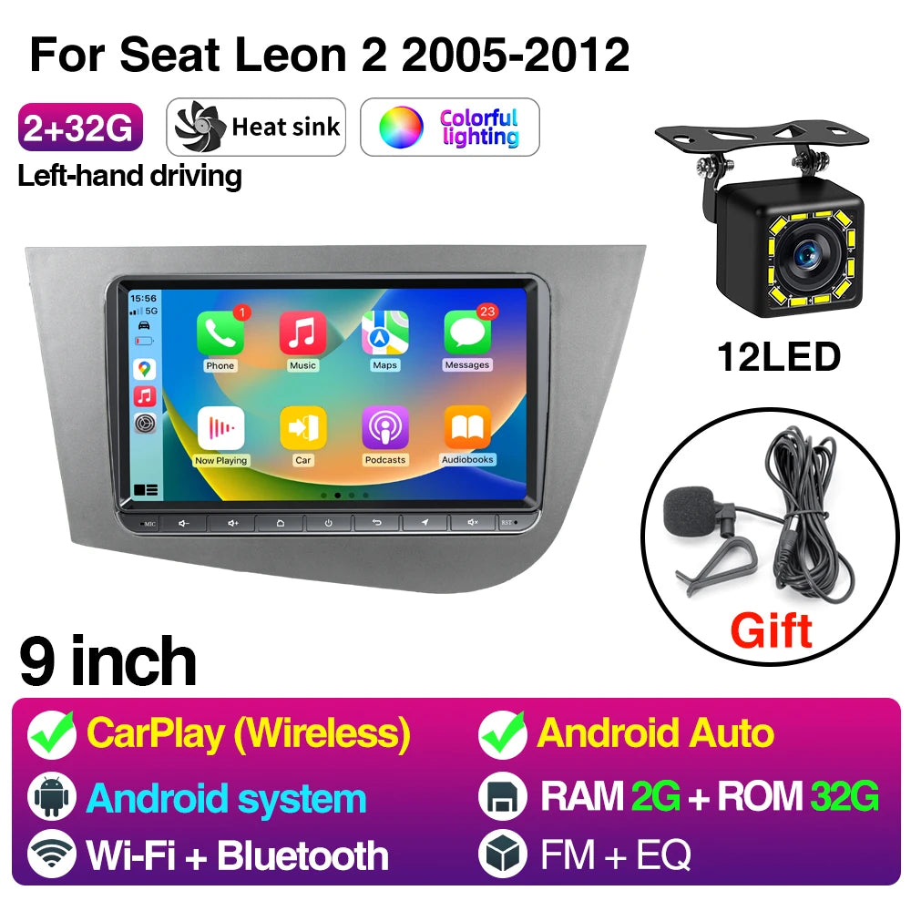 Auto raadio Seat Leon 2 MK2 2005 - 2012 LHD — 7/8/9" topelt-DIN multimeedia peaseade CarPlay, Android Auto, WiFi ja sisseehitatud GPS-iga sujuvaks autos viibimise meelelahutuseks ja navigeerimiseks.