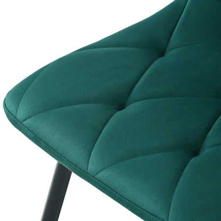 - 4 x Dark Green Twill Velvet Dining Chairs with Metal Frame