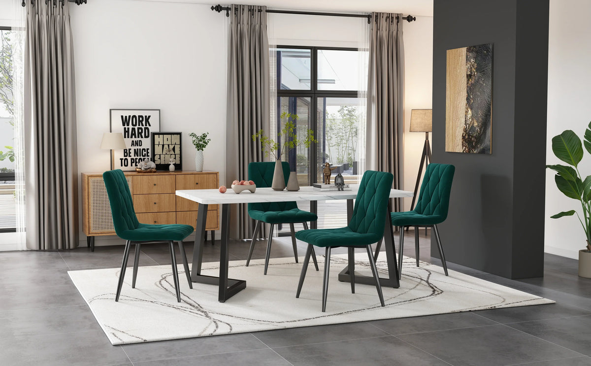 Kaunista oma söögikohta Dark Green Twill Velvet Dining Chairs Set Of 4 abil, kus ülim mugavus kohtub ajatu stiiliga. Toolidel on rikkalik tume roheline twill samet iste ja elegantne rauast raam, mis tagab pikaajalise stabiilsuse. Premium sametiga polsterdatud toolid lisavad igasse söögituppa, kööki või kohvikustiilis keskkonda rafineeritud puudutuse. Komplekt sisaldab nelja tooli ja vajab kokkupanekut, muutes selle lihtsaks kohandamiseks sinu ruumiga. Prantsusmaalt pärit disain ühendab klassikalise rafineerituse kaasaegse vastupidavusega.