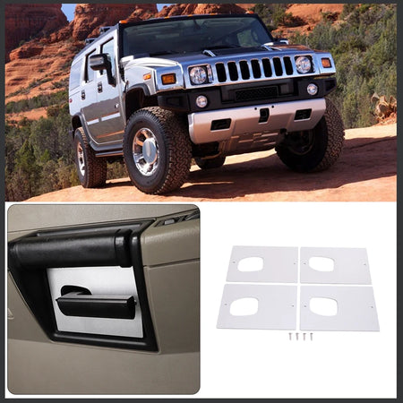 Värskenda ja kaitse oma 2003-2007 Hummer H2 interjööri Hummer H2 alumiiniumist ukse sisekäepideme kausside hõbedane komplekt 4. Valmistatud kvaliteetsest alumiiniumisulamist, need kriimustuskindlad, hõbedased sisemised vormid on loodud, et täiustada teie uste välimust, kaitstes samal ajal sisekäepideme kausse igapäevase kulumise eest. Sujuv, tehase sarnane viimistlus sulandub probleemideta sõiduki interjööri, andes teie H2-le rafineeritud ja ühtse välimuse. Lihtne paigaldada tugeva autotööstuse liimiga tagaküljega, see nelja komplekt pakub täielikku ukse katvust ühtse uuenduse jaoks kõigil neljal uksel.