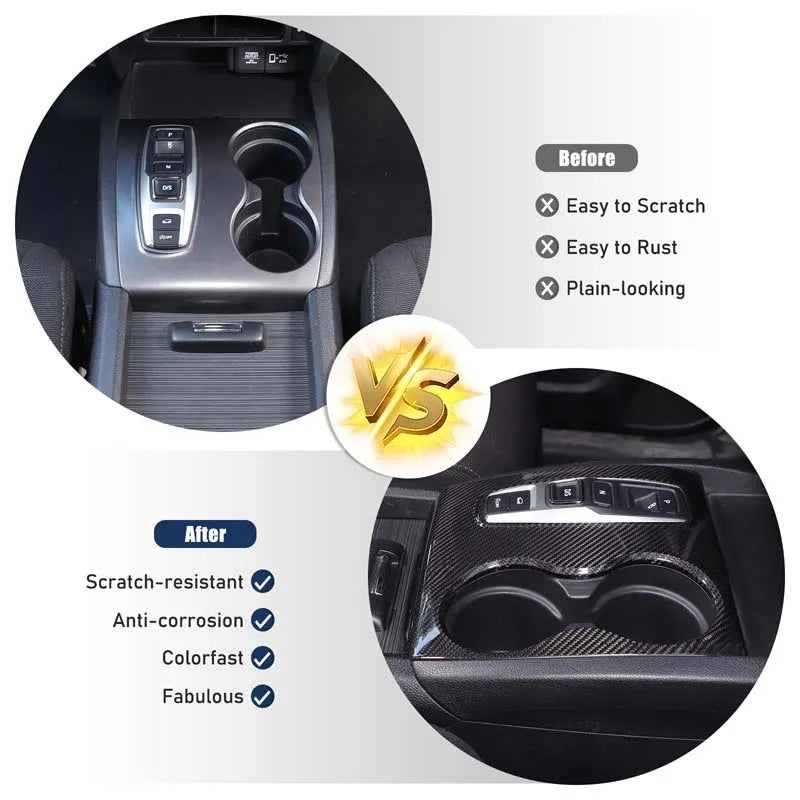 Uuendage oma Honda Piloti interjööri Real Carbon Fiber Center Console Cup Frame Cover'iga. Valmistatud kvaliteetsest ehtsast süsinikkiust, täiustab see interjööri viimistlus kabiini välimust, kaitstes samal ajal keskmise veekruusi raami kriimustuste ja kulumise eest. Disainitud 2016-2022 Honda Piloti, Ridgeline'i ja Passporti mudelite jaoks, sobib see kate tihedalt, et luua sujuv ja kvaliteetne tunne. Hulgimüük ja tilkade saatmine on teretulnud, pakkudes allahindlusi või tasuta ekspressvedu, mis tavaliselt jõuab kohale 3-7 päeva jooksul.