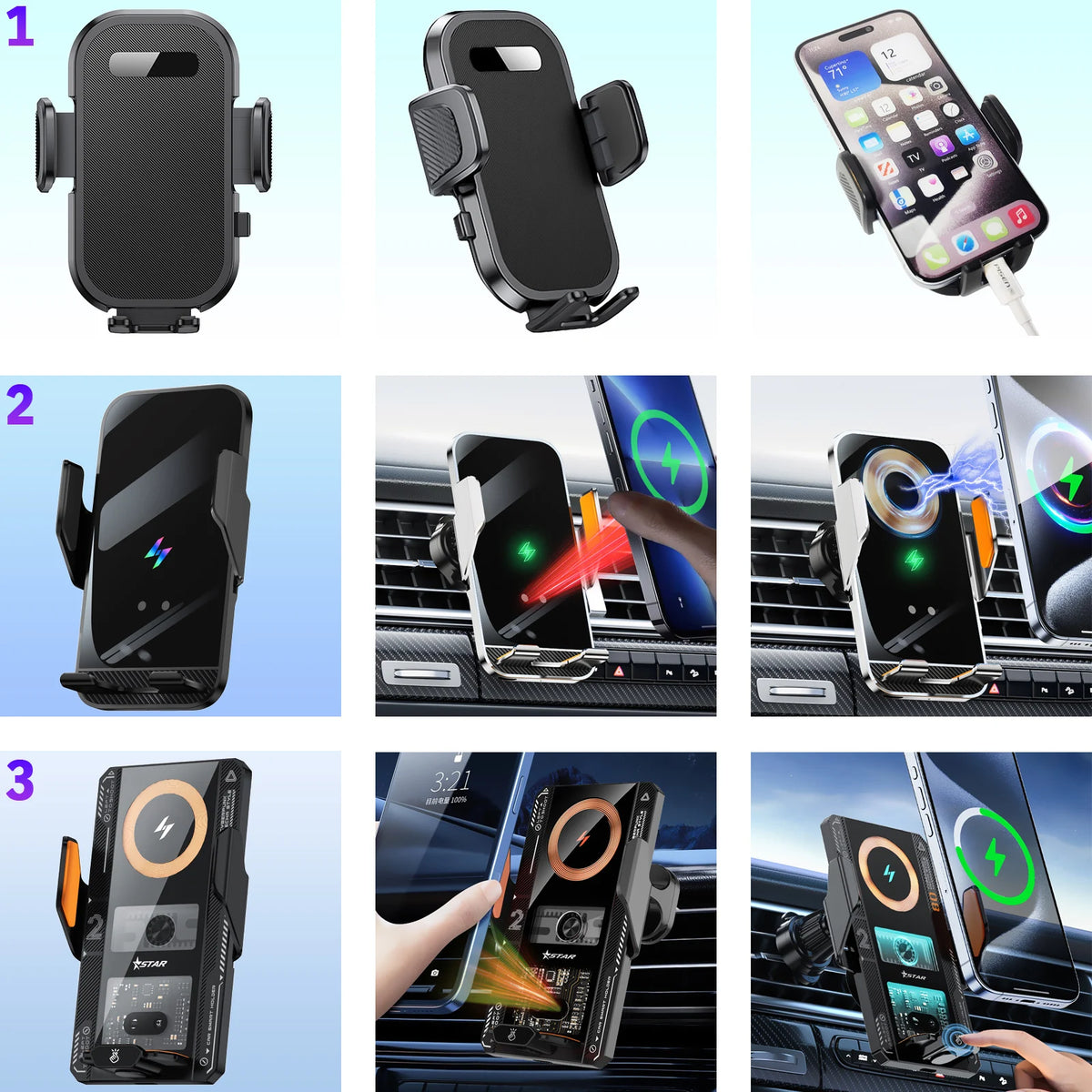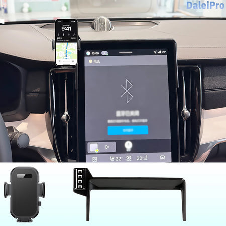Esitleme Volvo XC60 XC90 S90 ekraanitelefoni hoidjat ja juhtmevaba laadijat 15W — nutikas autoaksessuaar, mis hoiab teie telefoni käeulatuses, samal ajal kui see laadib. Valmistatud vastupidavast ABS-plastikust ja metallist, sobib see stiilne must hoidik mugavalt Volvo kabiinidesse, pakkudes stabiilset haaret ja puhtat välimust. Disain on reguleeritav ja pööratav, edendades ergonoomilist, ühe käega kasutamist, et saaksite kindlalt rooli keerata, samal ajal navigeerides, kõnesid vastu võttes või muusikat voogesitades. Juhtmevaba laadimine kuni 15W hoiab teie seadme laadituna ilma kaablite otsimise vaevata.