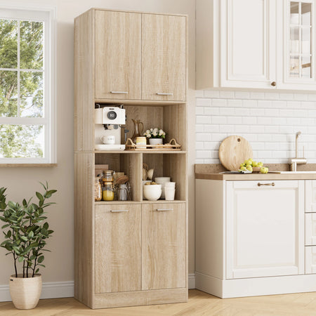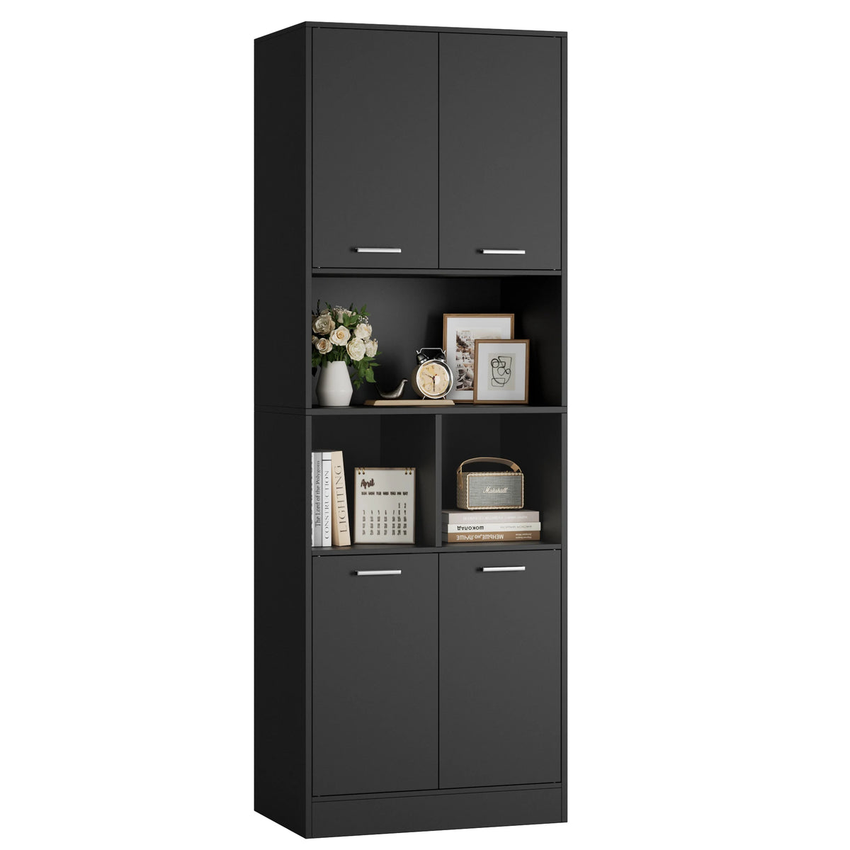 Getone White Tall Cabinet With Doors And Open Shelves 180 pakub nutikat ladustamislahendust hõivatud kodude jaoks. Seistes 180 cm kõrge, pakub see avarat ladustamist nelja suletud sektsiooni ja kolme avatud riiuliga, ideaalne rätikute, hügieenitoodete, köögitarvete, raamatute või väljapanekute jaoks. Kapp on valmistatud melamiini paneelidest koos metallist riistvaraga vastupidavuse tagamiseks ning lõpetatud puhta valge tooniga, mis sobib kaasaegsetesse interjööridesse. Magnetilised uksed hoiavad esemed privaatsena ja tolmuvabadena, samas kui sisse ehitatud kallutamisvastane ohutusfunktsioon lisab stabiilsust peredele, kus on lapsi. Reguleeritavad riiulid võimaldavad teil kohandada interjööri kõrgete pudelite, suurte konteinerite või failide jaoks, valides viiest kõrguse seadmest. Veekindla pinnaga ja lihtsa kokkupanekuga on see kapp loodud taluma igapäevast kasutamist vannitubades, köökides, töötubades või elutubades.