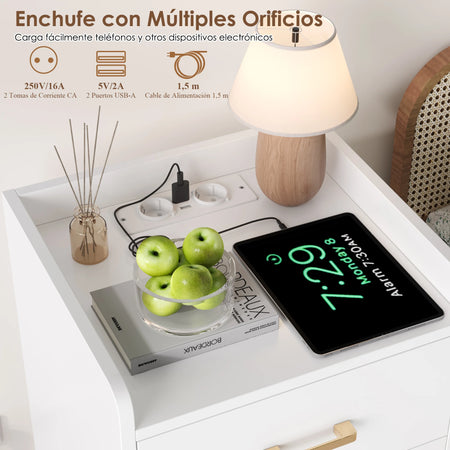 See öökapp sisaldab sisseehitatud toitepistikut, millel on 2 USB-porti ja 2 AC pistikupesa 1,8 m kaabliga, võimaldades teil laadida oma telefoni, tahvelarvutit, lampe ja kõlareid voodis või diivanil ilma pistikupesade poole ulatumata. Ülemine pind on ideaalne lambile, väikesele taimele või dekoratiivsele esemele, et isikupärastada oma ruumi.