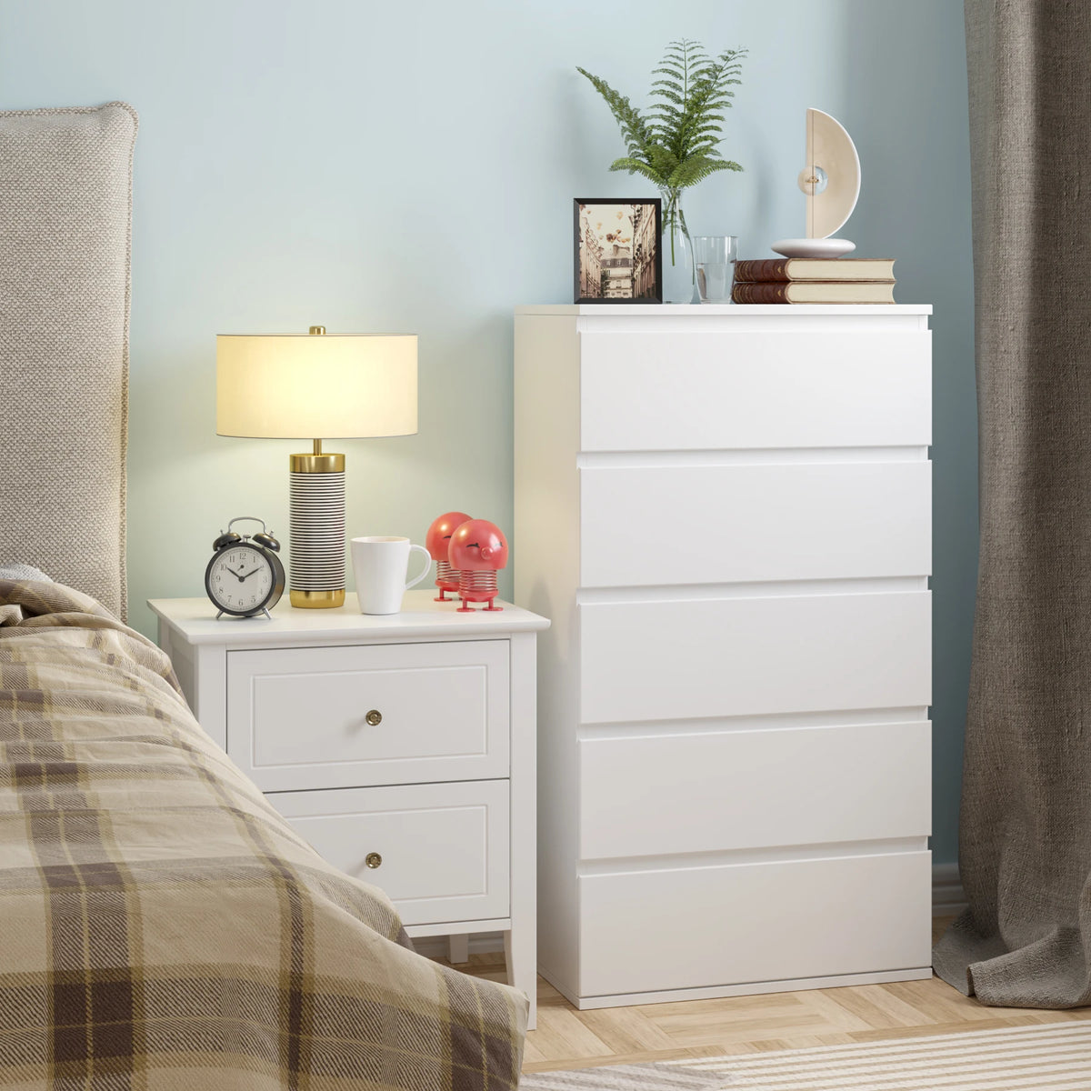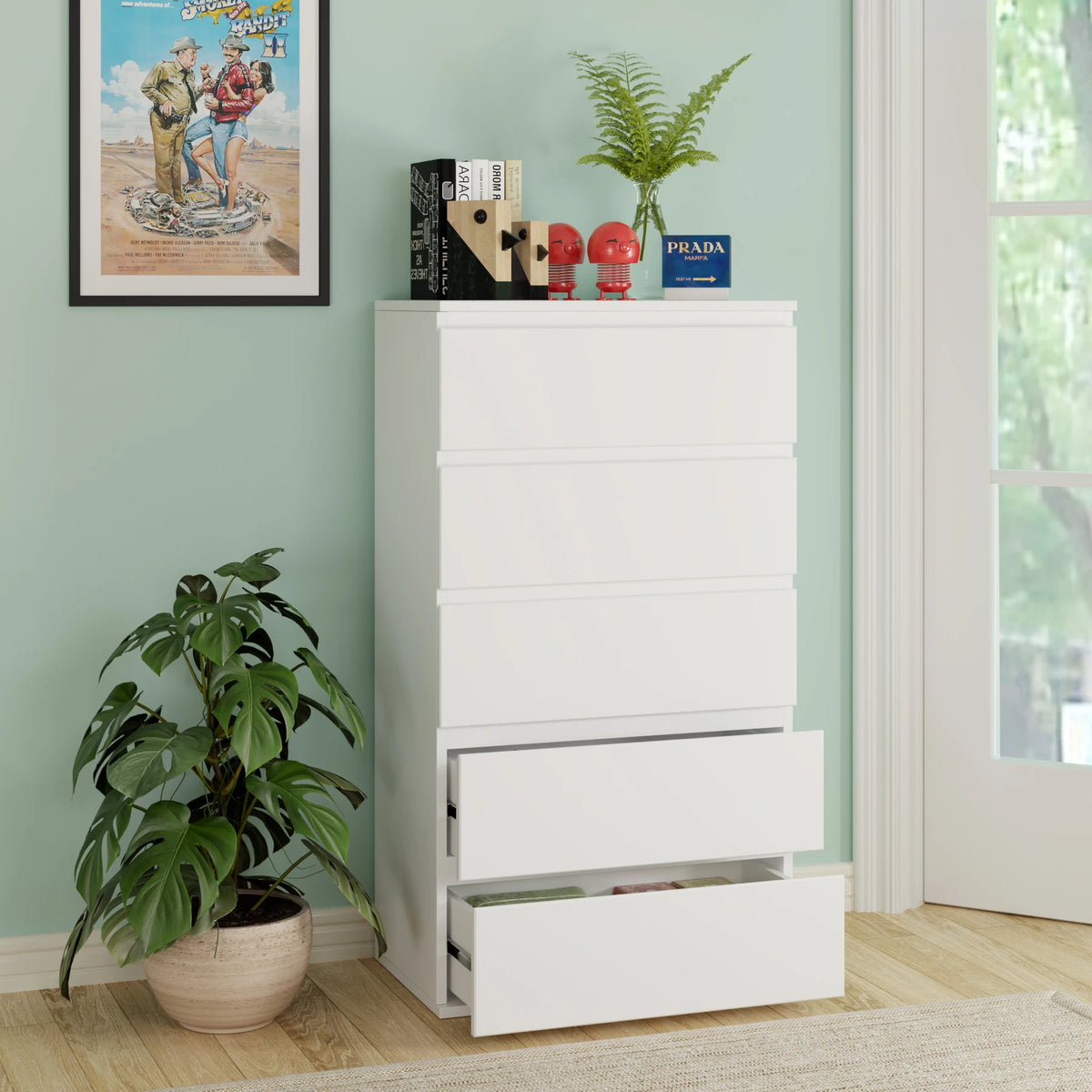 Getone Valge Kõrge 5 Sahtliga Kummut Magamistuppa