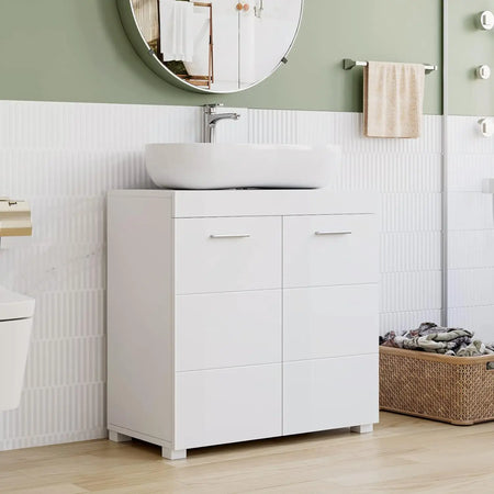Uuenda oma vannituba Getone White Under Sink Cabinetiga. See kaasaegne kahe uksega hoiukapp mõõtmetega 60x31x60 cm sobib kenasti enamikesse kraanikaussidesse, pakkudes peidetud hoiuruumi rätikutele, paberrätikutele, pesuvahenditele, šampoonidele ja muule. Tugevatest MDF-paneelidest valmistatud kapp on stabiilne ja niiskuskindel, aidates hoida niiskeid ruume korras ja organiseerituna. Suletud disain tagab privaatsuse ja kaitse tolmu eest, samas kui 22x8 cm sifooni süvend mahutab torustiku mugavalt. Metallhinged tagavad sujuva ja vaikse avamise ja sulgemise igapäevaseks kasutamiseks.