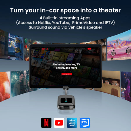 - Voogedastage YouTube'i, Netflixi ja IPTV otse oma auto ekraanile, et muuta reis nauditavamaks — eriti pikematel reisidel või autoga oodates.