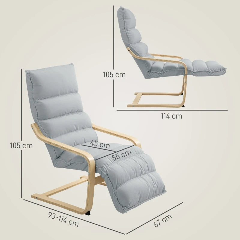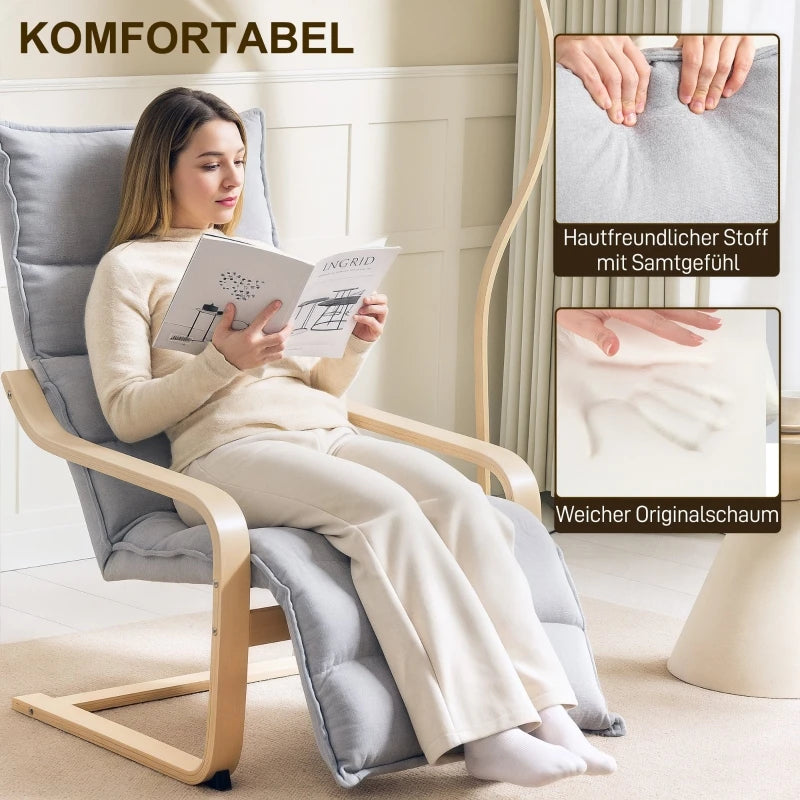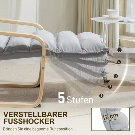 Kogege luksust ja igapäevast mugavust Velvet Lounge Chair With Adjustable Footstool, mis on silmapaistev element igas elutoas. Valmistatud nahasõbralikust sametkangast ja pehmest vahtmaterjalist, pakub see lamamistool sügavalt polsterdatud 12 cm istet ja kõrget seljatuge, et nautida sügavat lõõgastust. Viie tasemega reguleeritav jalatugi (0° kuni 90°) võimaldab teil kohandada jala toetust lugemiseks, televiisori vaatamiseks või pärast kiiret päeva lõõgastumiseks. Kumer kase laminaatraam tagab õrna tõusu ja graatsilise silueti, pakkudes samas kindlat stabiilsust aastateks kasutamiseks.