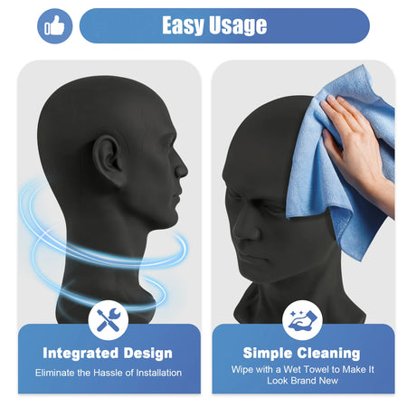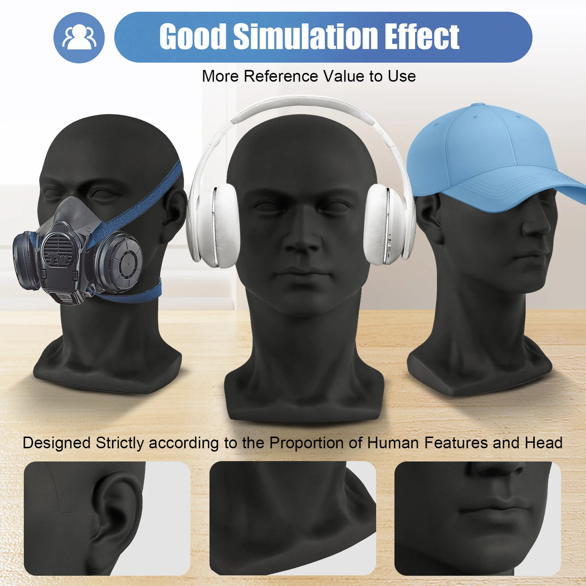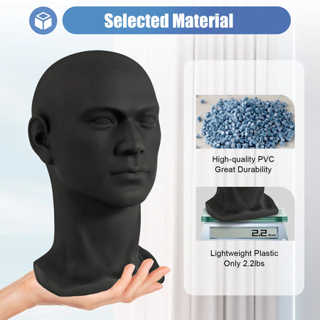 Tooge oma poe või kodu väljapanek kõrgemale tasemele Male Model Head PVC Display Wig Stand'iga. Valmistatud vastupidavast PVC-st, see elutruu väljapaneku pea pakub stabiilset ja professionaalset välimust parukatele, mütsidele, prillidele ja aksessuaaridele. Selle klassikaline must viimistlus pakub sujuvat, plekikindlat pinda, mida on lihtne puhtana hoida, muutes selle ideaalseks keskpunktiks aknaväljapanekutes, salongides või jaemüügihylledes.