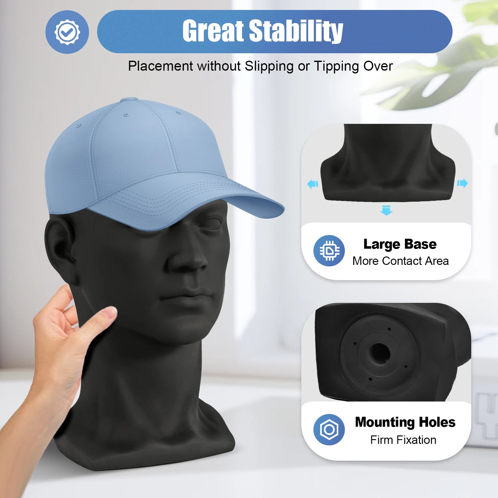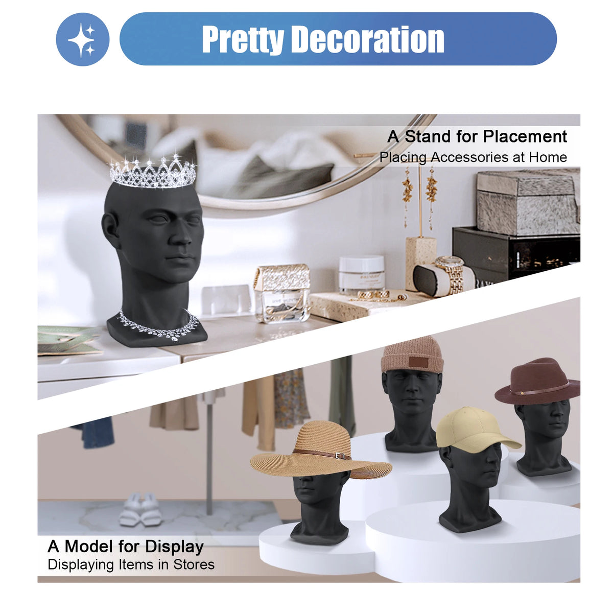 - Mitmekülgne väljapaneku tööriist: Ideaalne parukate, mütside, turbaanide, kaelashaalide, prillide ja muude aksessuaaride esitlemiseks selges ja atraktiivses kontekstis.