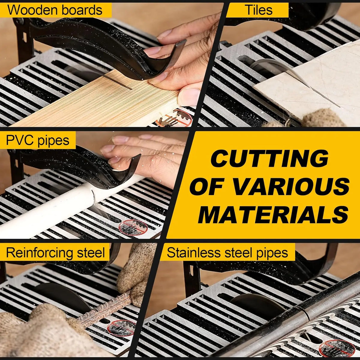 - Mitmekesised lõikevõimalused puidus, vasest, alumiiniumis, rauas, roostevabas terases, klaasis, plaatides ja kivis kolme 4-tollise lõikeplaadiga.