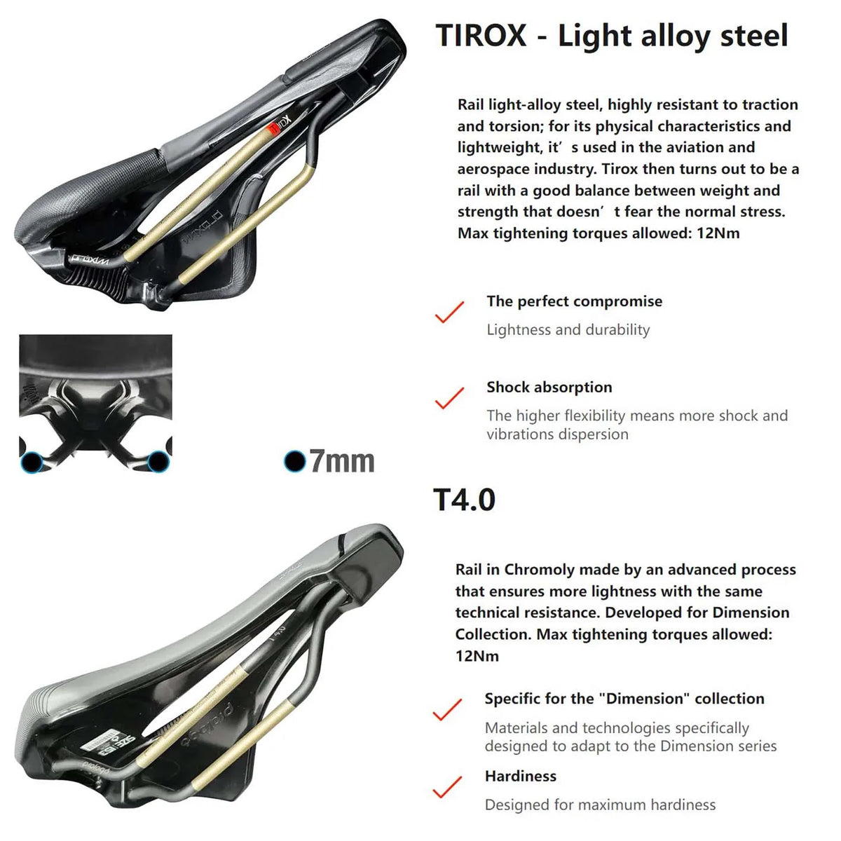 Prologo Dimension 143 STN Triox Rail Road Bike Saddle on loodud maanteeratturitele, võidusõitjatele, ajavõistlustel ja triatlonisportlastele, kes nõuavad igalt sõidult mugavust, jõudlust ja kerget efektiivsust. See istekoht ühendab laiemat 143 mm profiili läbimõeldud lühikese ninaga, et toetada võimsat pedaalimist, vähendades samal ajal esiosa survet.