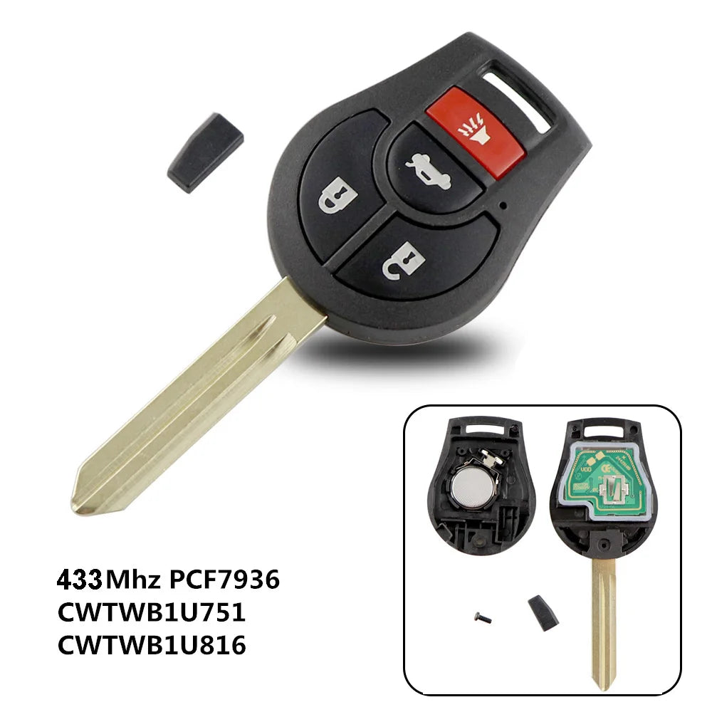 Nissani Rogue'i kaugjuhtimispult 315/433MHz ID46 kiibiga, 3 nuppu